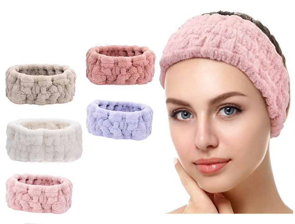 (Vincha de Skincare en colores surtidos( rosa, rosa viejo. blanco, beige y lila ). Ideal para tu rutina de día a día).