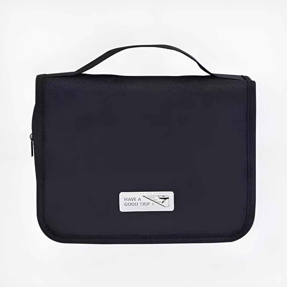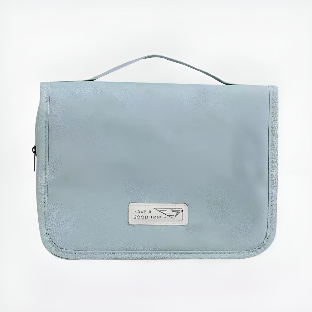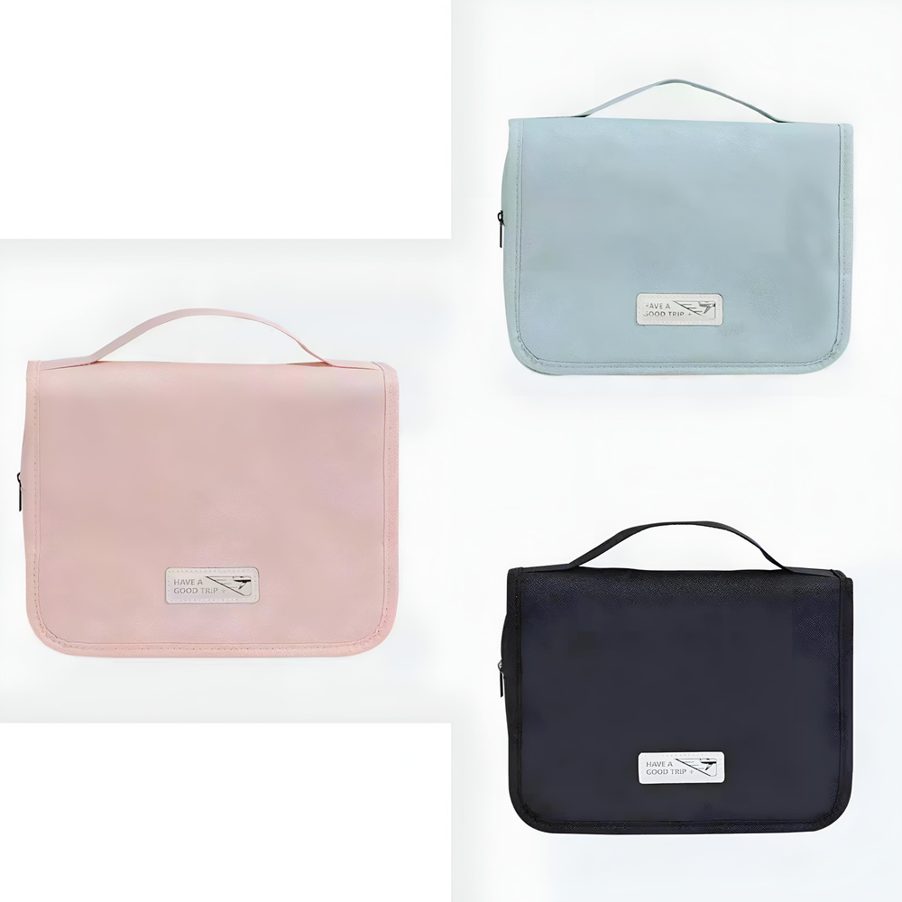 (Neceser plegable con compartimentos de malla y un gancho para colgar, ideal para viajes y optimizar el espacio en el baño y también es portátil con asa de mano, perfecto para llevar cosméticos o artículos de cuidado personal de forma organizada. Están diseñados para mantener los artículos de higiene y belleza ordenados y protegidos, especialmente durante viajes).