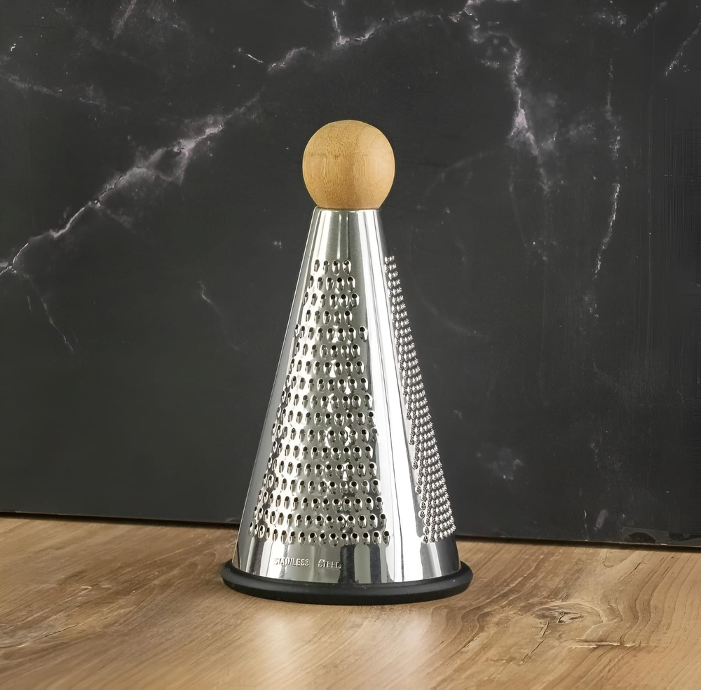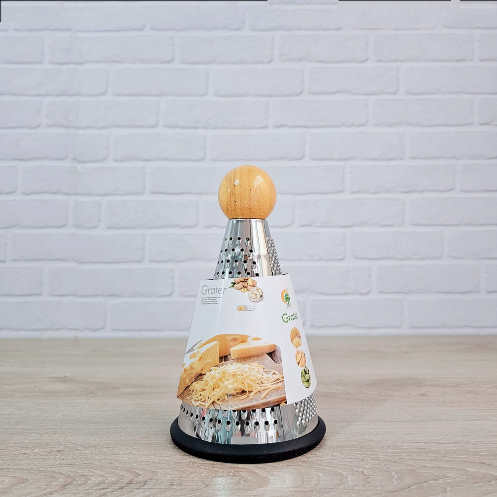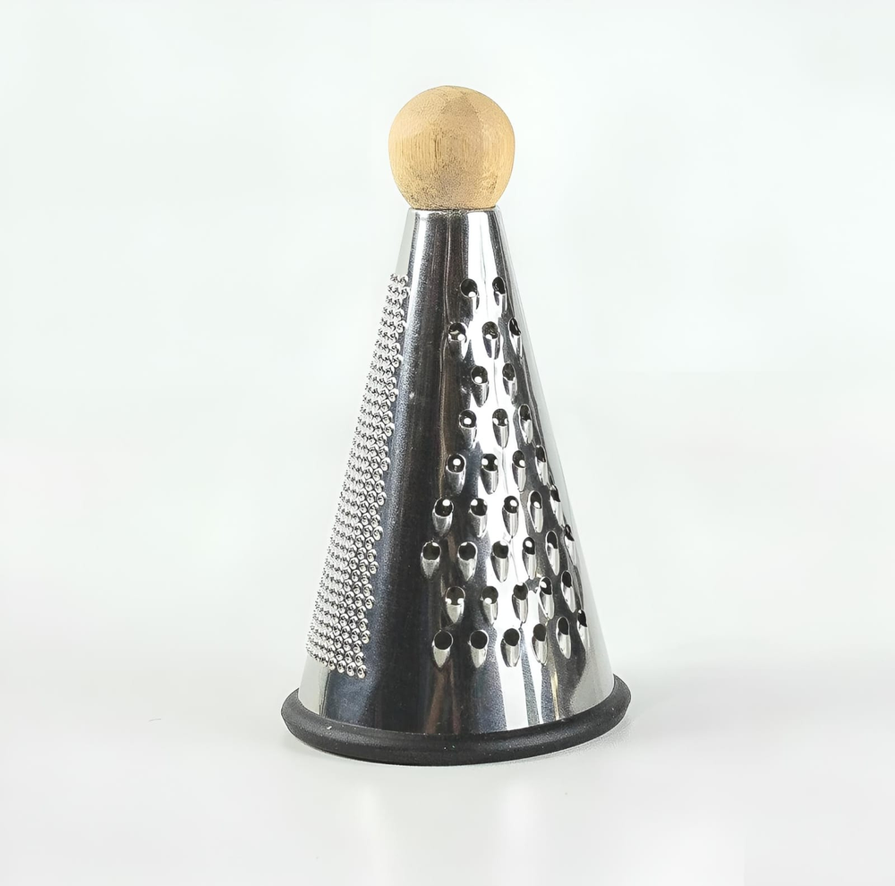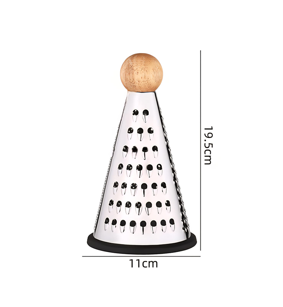 (Rallador de acero inoxidable, con mango de madera y silicona en la base, 3 tipos de cortes). ut24