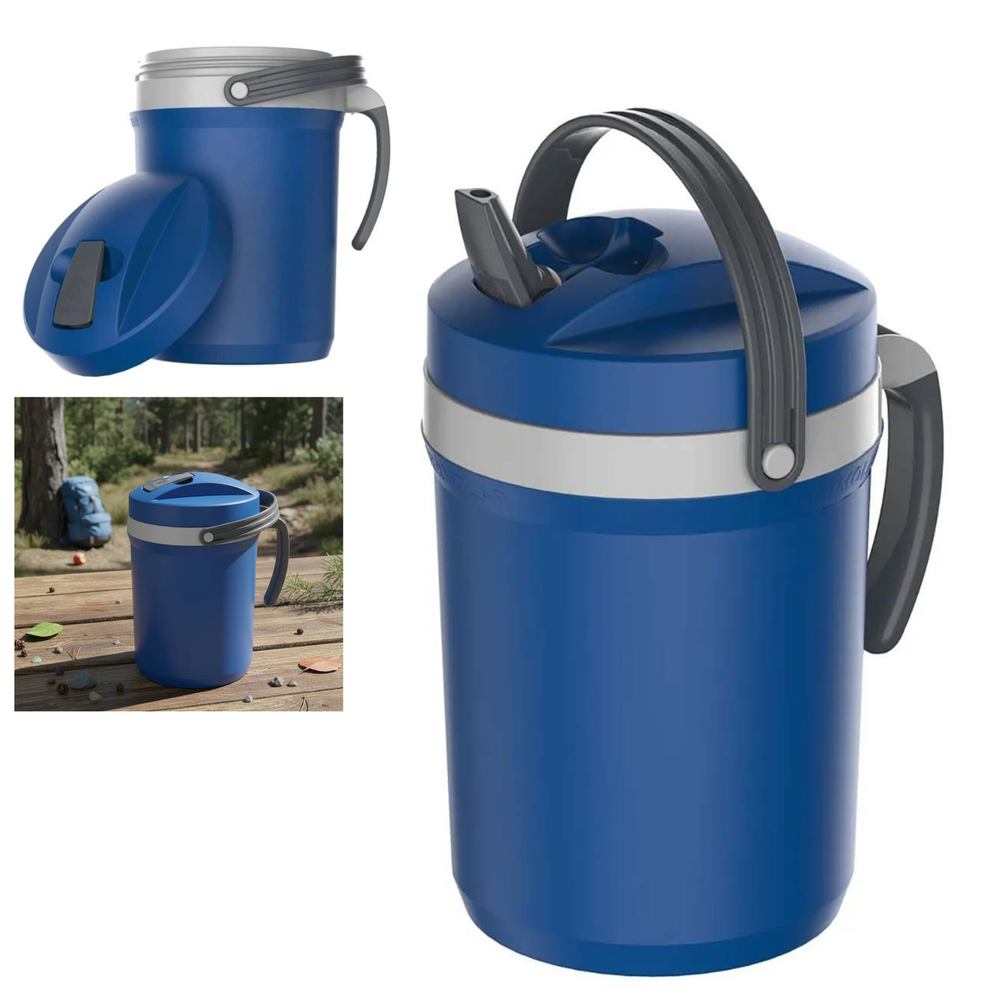 (Esta jarra tiene una capacidad de 2.5 litros, ideal para mantener bebidas frías como tereré, jugos o té helado, y es perfecta para compartir o llevar a campamentos, pesca o la playa. Cuenta con dos asas (una móvil para transporte y otra fija para servir), un pico vertedor direccionable, y una boca grande que facilita la limpieza y el llenado. Está fabricada en plástico libre de BPA, lo que garantiza la seguridad de tus bebidas, y su aislamiento térmico en PU asegura una alta resistencia y una conservación diferenciada de la temperatura. Incluye un sistema antigoteo y tiene una superficie antideslizante).