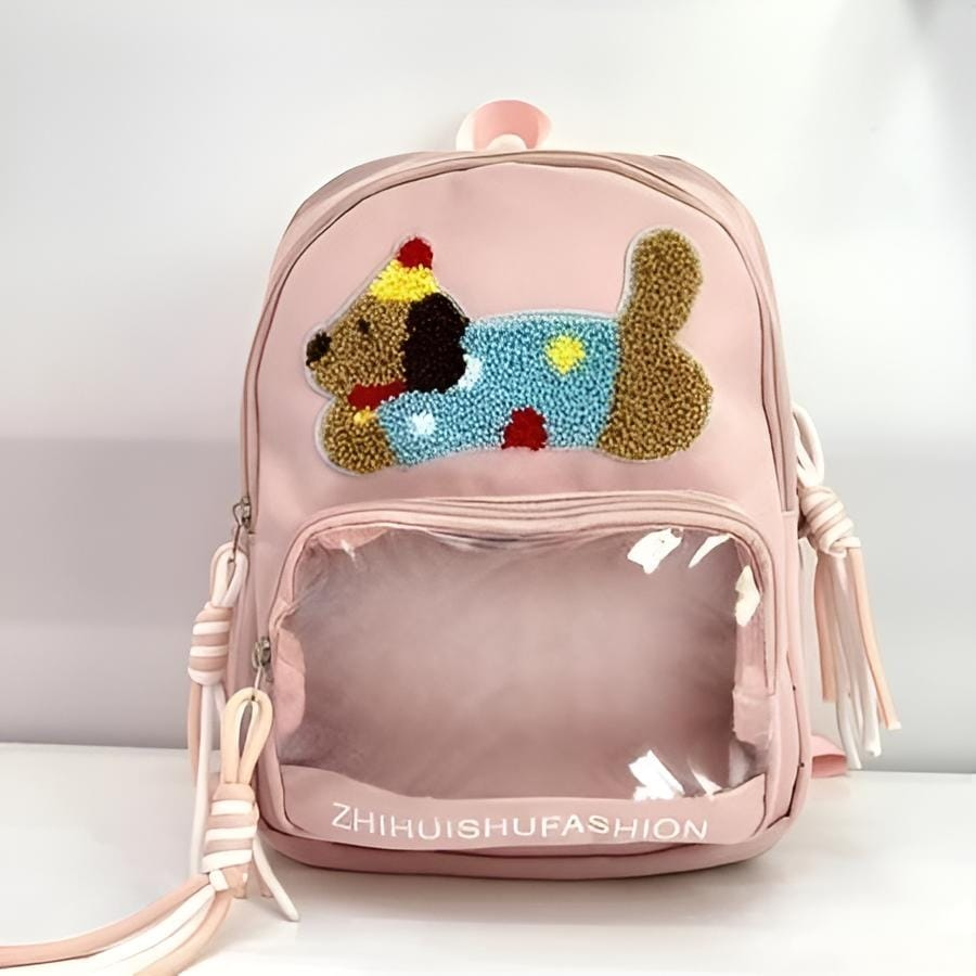 (Cuenta con un compartimiento principal con bolsillo interno, dos bolsillo frontales (uno de ellos con visor que incluye pins de diseños surtidos), dos bolsillo laterales, un bolsillo trasero con cierre y tiras acolchonadas. Sirven para transportar objetos personales en el día a día, como teléfonos, llaves, botellas de agua o artículos pequeños. Su capacidad permite llevar lo necesario para salidas o paseos).