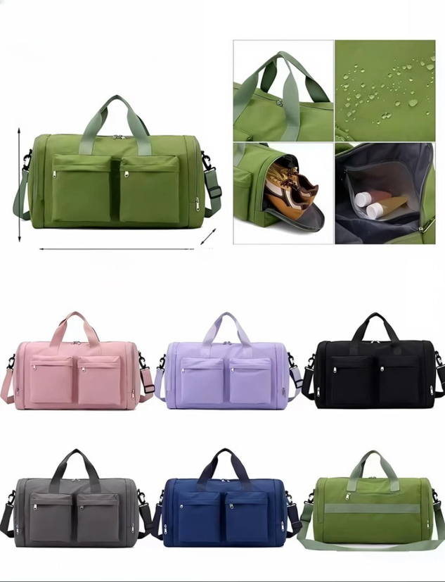 (Bolso de viaje, cuenta con un compartimiento amplio, con tres bolsillos internos (Uno de ellos para húmedos), dos bolsillos frontales, un bolsillo lateral, un compartimiento para zapatos, un bolsillo trasero y una corre larga. Ideal para llevar ropa, artículos personales y otros objetos necesarios para viajes cortos, escapadas de fin de semana o como equipaje de mano en vuelos. ).