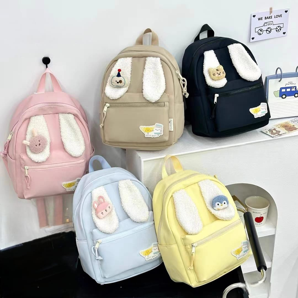 (Esta mochila cuenta con un compartimiento amplio con un bolsillo interno, dos bolsillos laterales, tiras acolchonadas y un bolsillo frontal con cierre. Hermosos diseños de orejas de peluche con pins surtidos de animales. Disponible en 4 colores).
