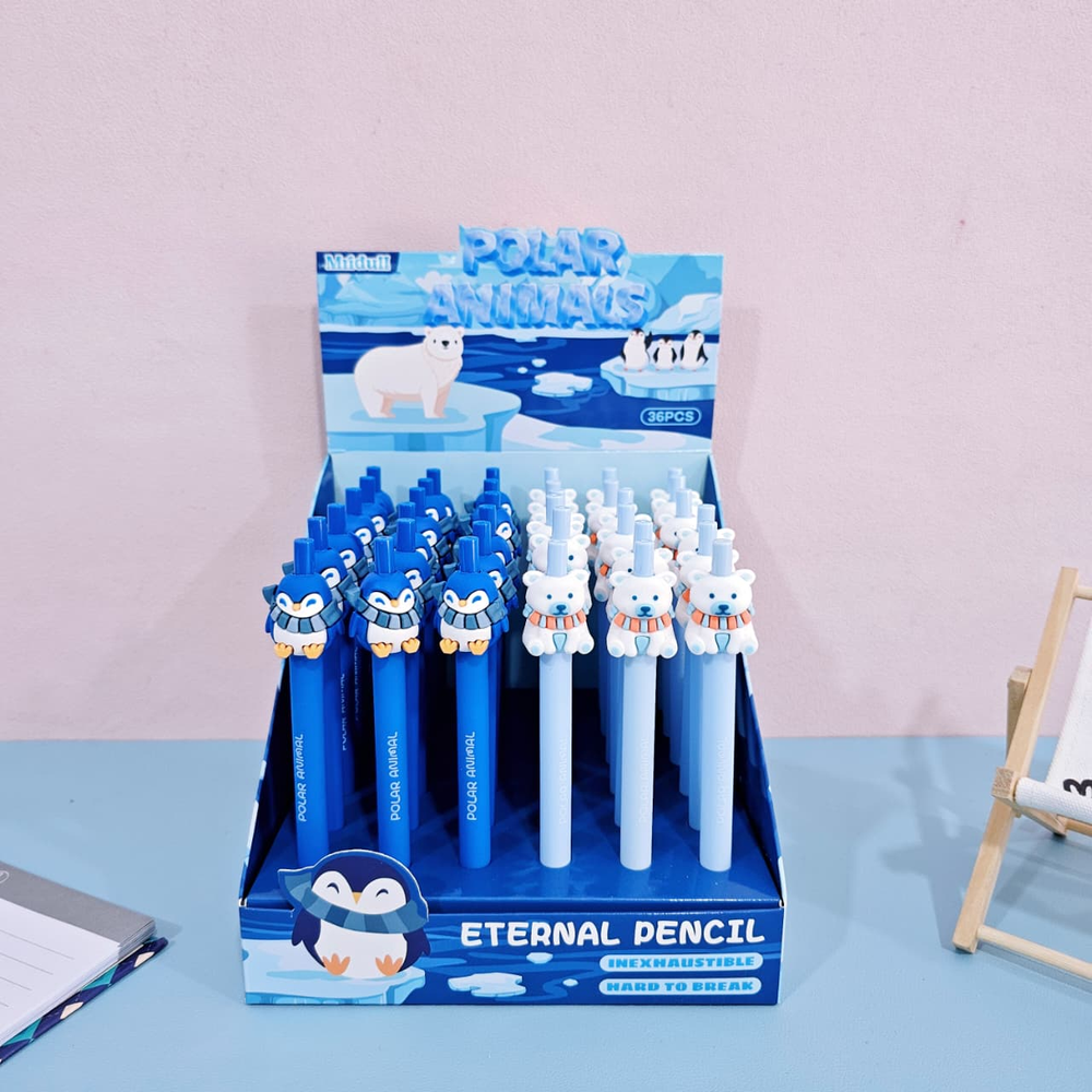 (Lapiz Retractil con diseño de pingüinos y osos polares ideales para el cole, la facu y la oficina).