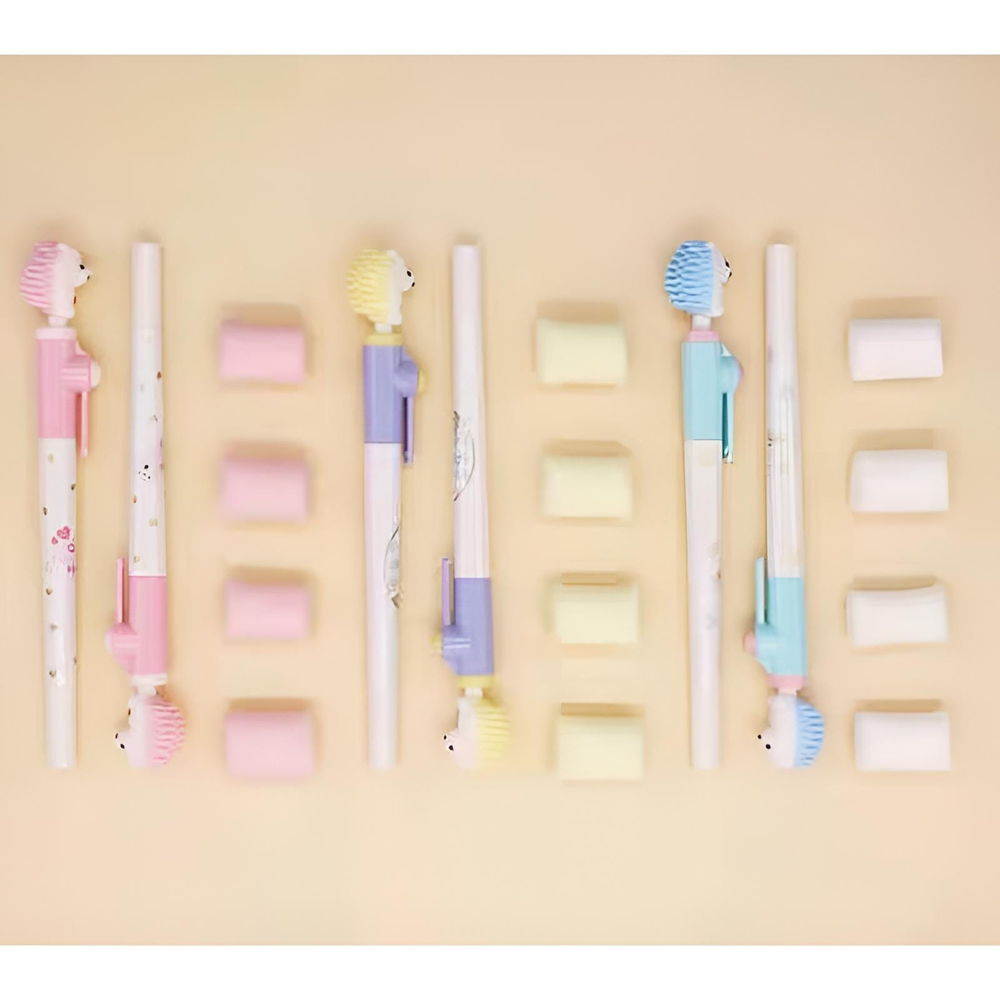 (Lapiceras con divertido diseño de erizos, el elemento en la parte superior es un juguete antiestrés permitiendo al usuario manipularlo para aliviar la tensión o simplemente por diversión. Su diseño atractivo y divertido los hace ideales como obsequio o para coleccionistas de artículos de papelería temáticos).