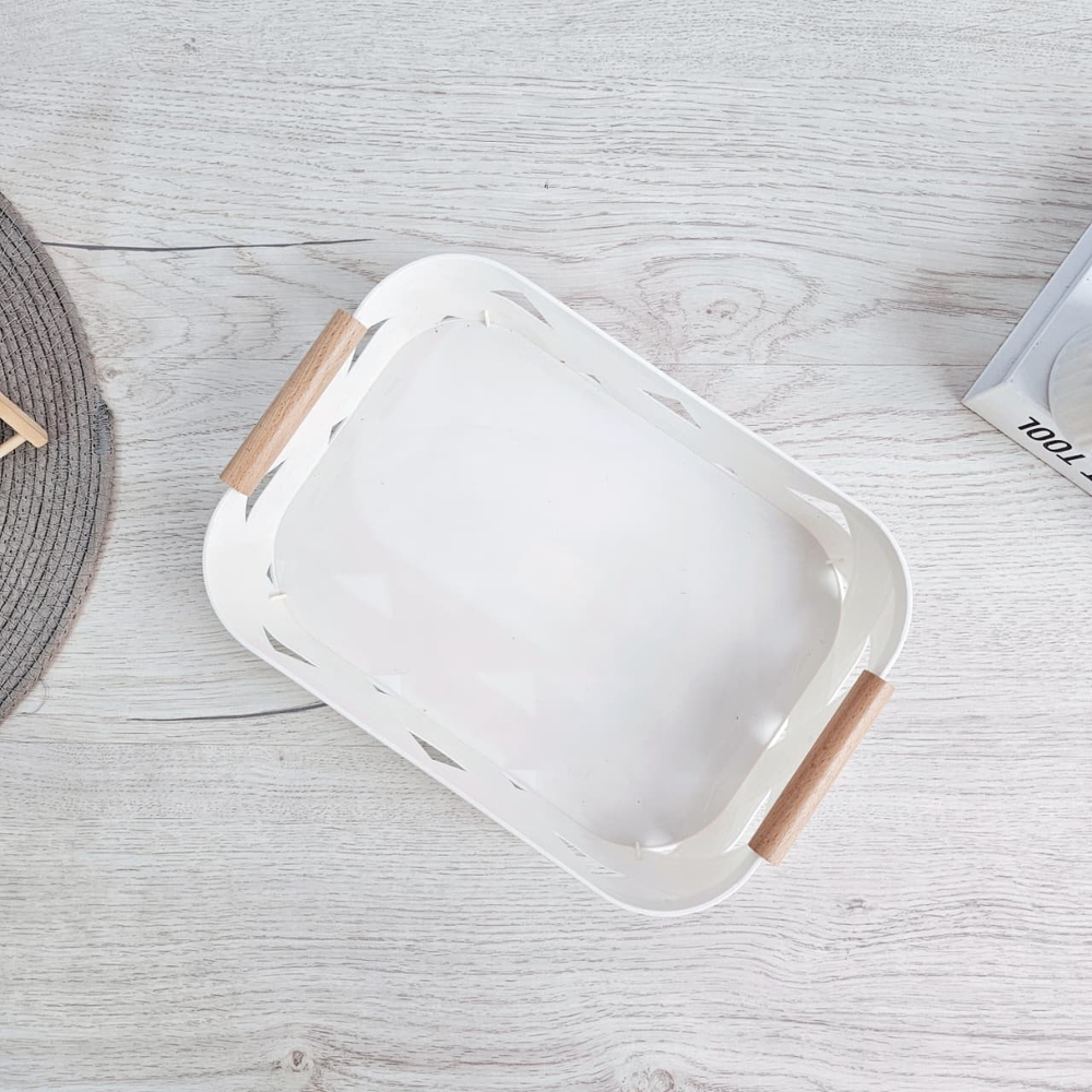 (Canasto organizador con manija, ideal para guardar cosas que tengas ocupando lugar. Es multiuso, puede utilizarse, en el baño, en la cocina, en la habitación, donde más guste).