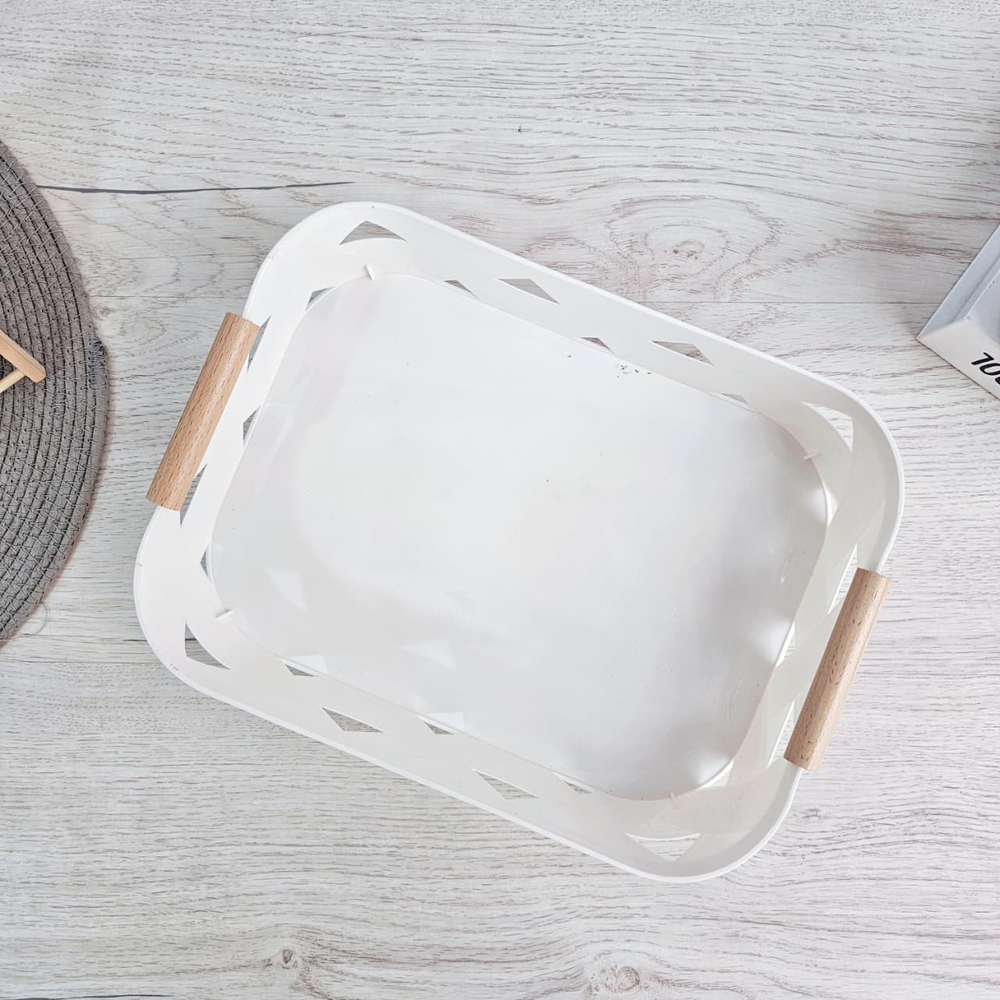 (Canasto organizador con manija, ideal para guardar cosas que tengas ocupando lugar. Es multiuso, puede utilizarse, en el baño, en la cocina, en la habitación, donde más guste).