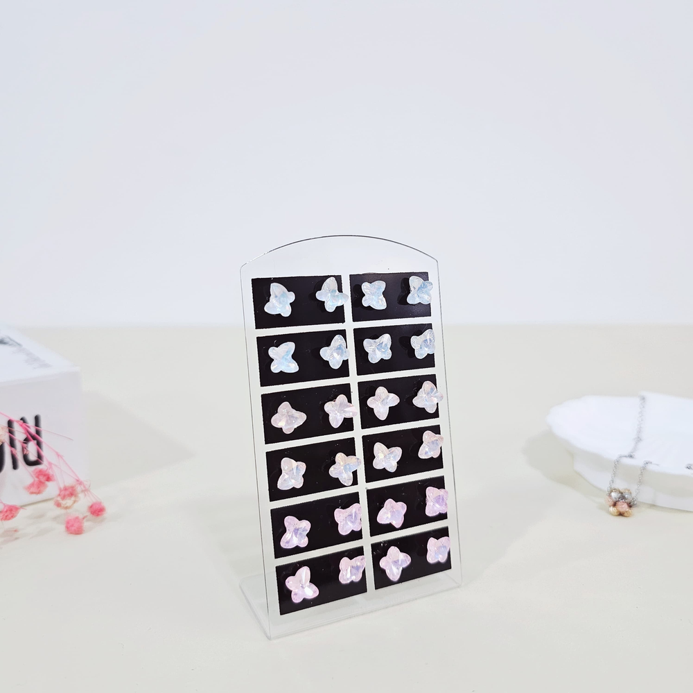 (Pack x12 Blister Aritos surtidos, cuenta con un diseño de mariposas tornasoladas. Ideales para poder tener en variedad para ciertas ocasiones).