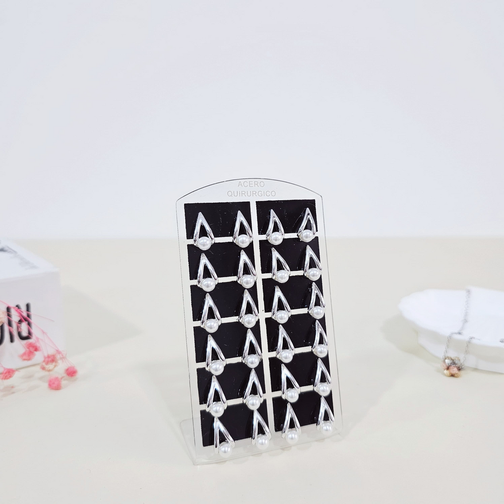 (Pack x12 Blister Aritos con diseño de gota y en el extremo tiene una perla. Ideales para poder tener en variedad para ciertas ocasiones).