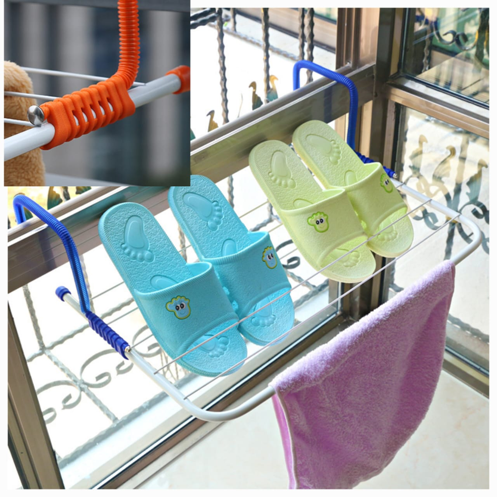 (Tender de Balcon permite colgarlo en balcones, ventanas, puertas, radiadores o incluso bañeras. Su diseño compacto es perfecto para apartamentos o viviendas con espacio limitado, ya que se pliega fácilmente cuando no está en uso).