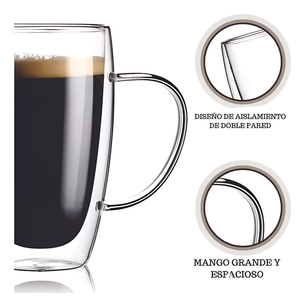 (Taza Doble Vidrio para disfrutar de un delicioso café o té en un elegante diseño. con paredes dobles no transfieren el calor al exterior, por lo que puede tomar el vaso con las manos sin temor a quemarse).