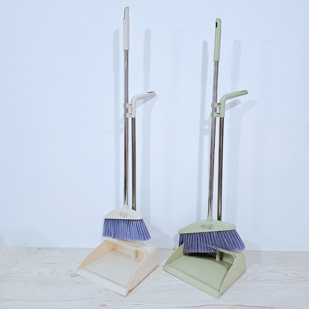 (Escoba para recoger todo tipo de residuo, polvo, suciedad. Viene en conjunto con la palita para recoger en un hermoso color verde o beige).