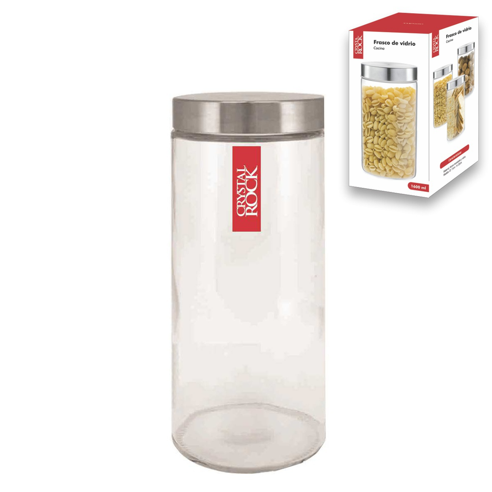 Frasco ideal para almacenar una amplia variedad de alimentos secos como granos, cereales, nueces, especias y conservas caseras, entre otros. Ofrecen un almacenamiento seguro e higiénico, ya que el vidrio es inerte y no reacciona con los alimentos, manteniendo su frescura y sabor. Son una opción ecológica, ya que el vidrio es un material reciclable y reutilizable, reduciendo la dependencia de envases de plástico desechables. Su transparencia permite ver fácilmente el contenido y la cantidad restante, facilitando la organización en la cocina o despensa).