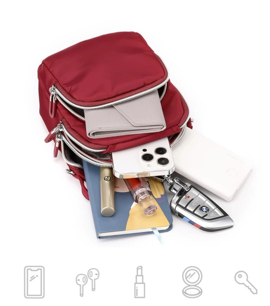 (Se puede utilizar como bolso de hombro y bolso de cuerpo, correa de hombro ajustable y desmontable, fácil de quitar, también se puede utilizar como bolso de mano. Tiene tres bolsillos funcionales con cierre, lo que lo hace más fácil y seguro de organizar, y puede guardar cómodamente todos los artículos esenciales. También hay un bolsillo anterior oculto con cierre que puede contener auriculares o tarjetas de crédito, la parte posterior está equipada con orificios para auriculares).
