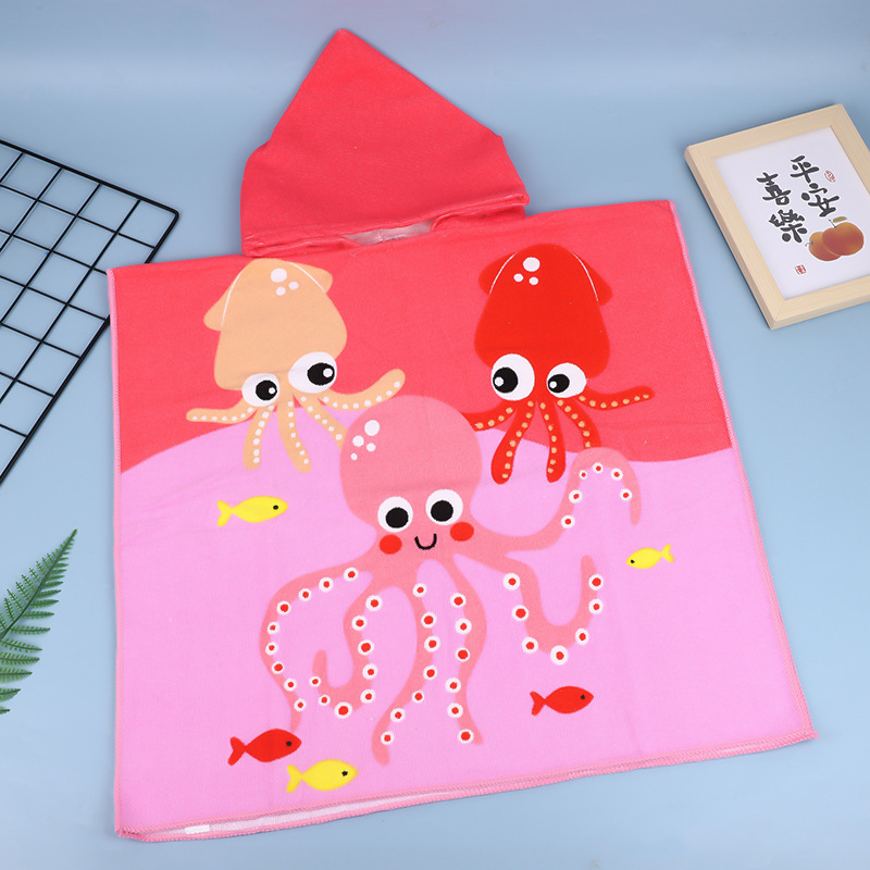 (Ponchos de toalla diseñadas para ser utilizadas después del baño, la piscina o la playa. Permiten envolver al niño completamente para un secado eficiente después de actividades acuáticas. Su diseño con capucha ayuda a mantener la cabeza y el cuerpo abrigados, especialmente útil en ambientes fríos o con viento. Son fáciles de poner y quitar, ofreciendo libertad de movimiento para los niños a diferencia de las toallas tradicionales que pueden caerse. Disponibles en diseños surtidos tanto de nene como de nena).