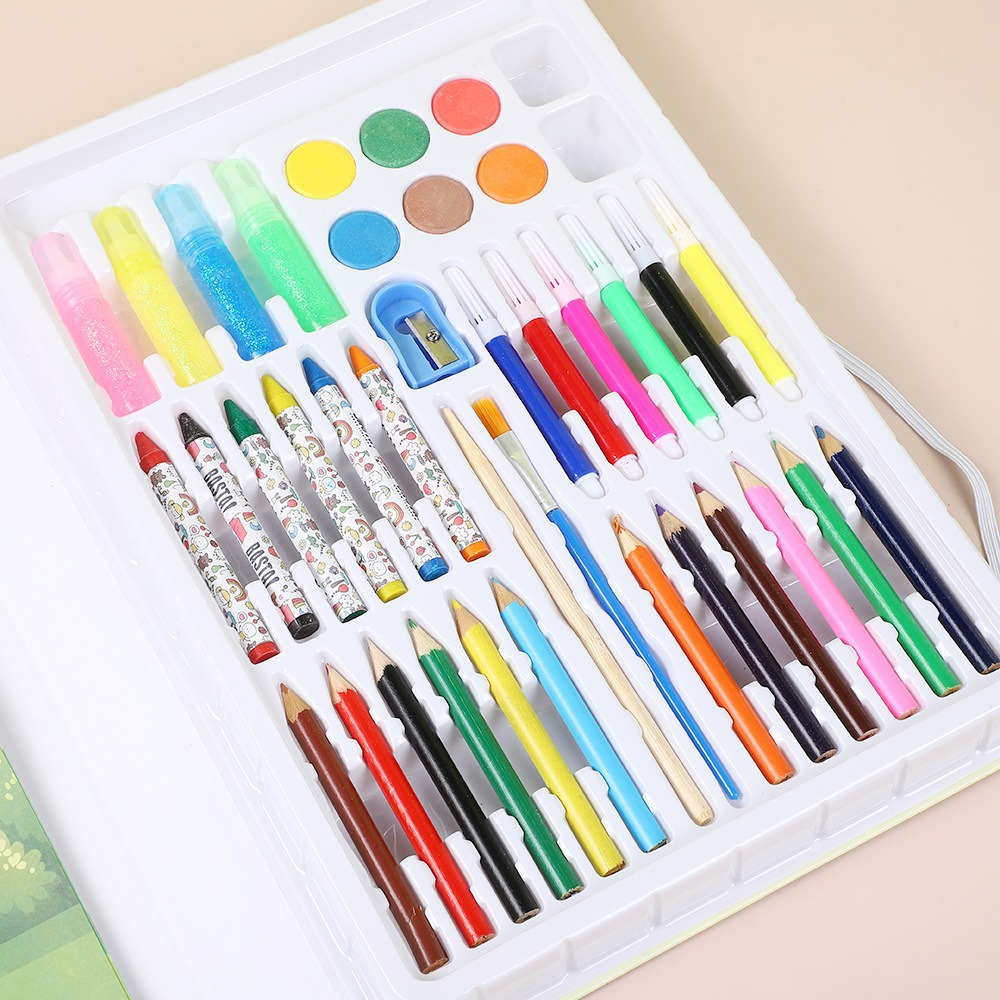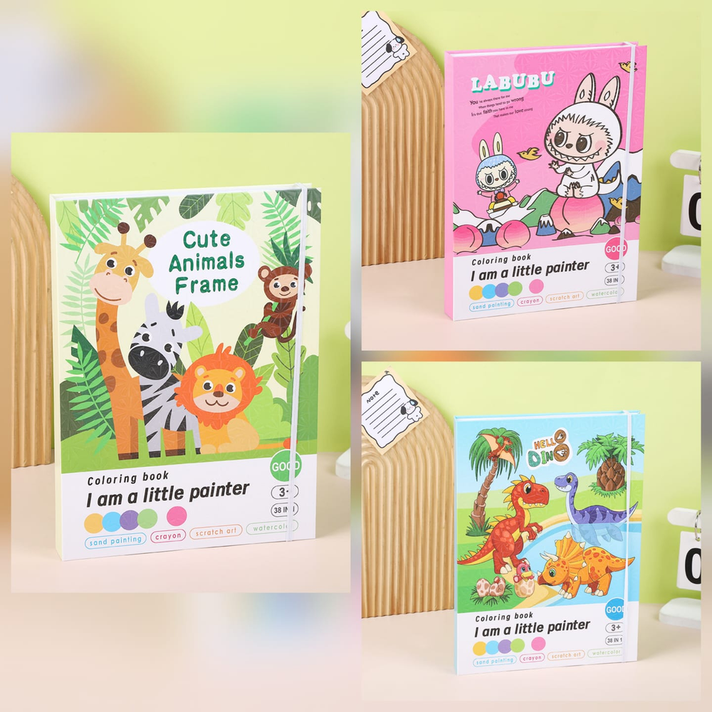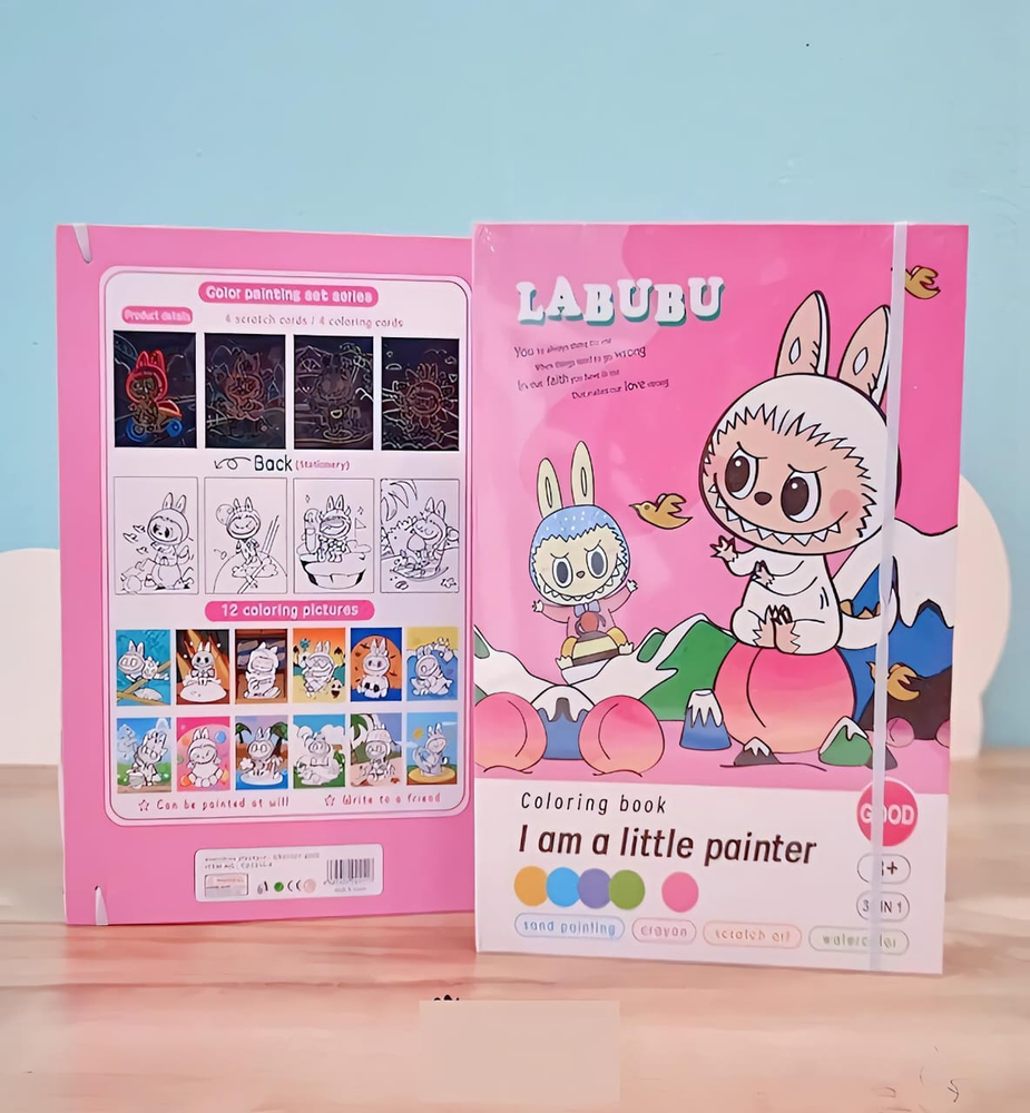 (Set de arte ideal para regalar, vienen con 12 diseños surtidos de Labubu para colorear. el Set incluye: 4 glitter en gel, 6 crayones de colores, 6 temperas, 6 fibras colores surtidos, 6 lápices de colores, 1 pincel, un sacapuntas y un palito de naranjo). (Ut28)