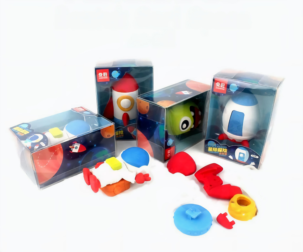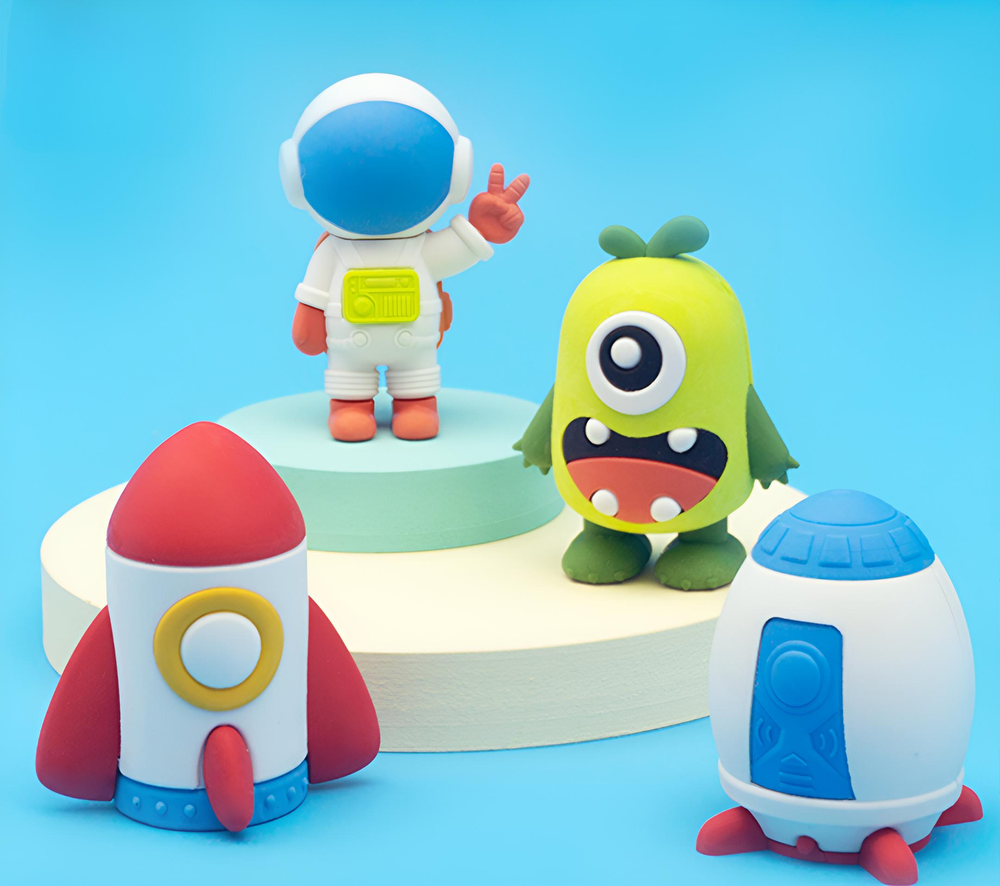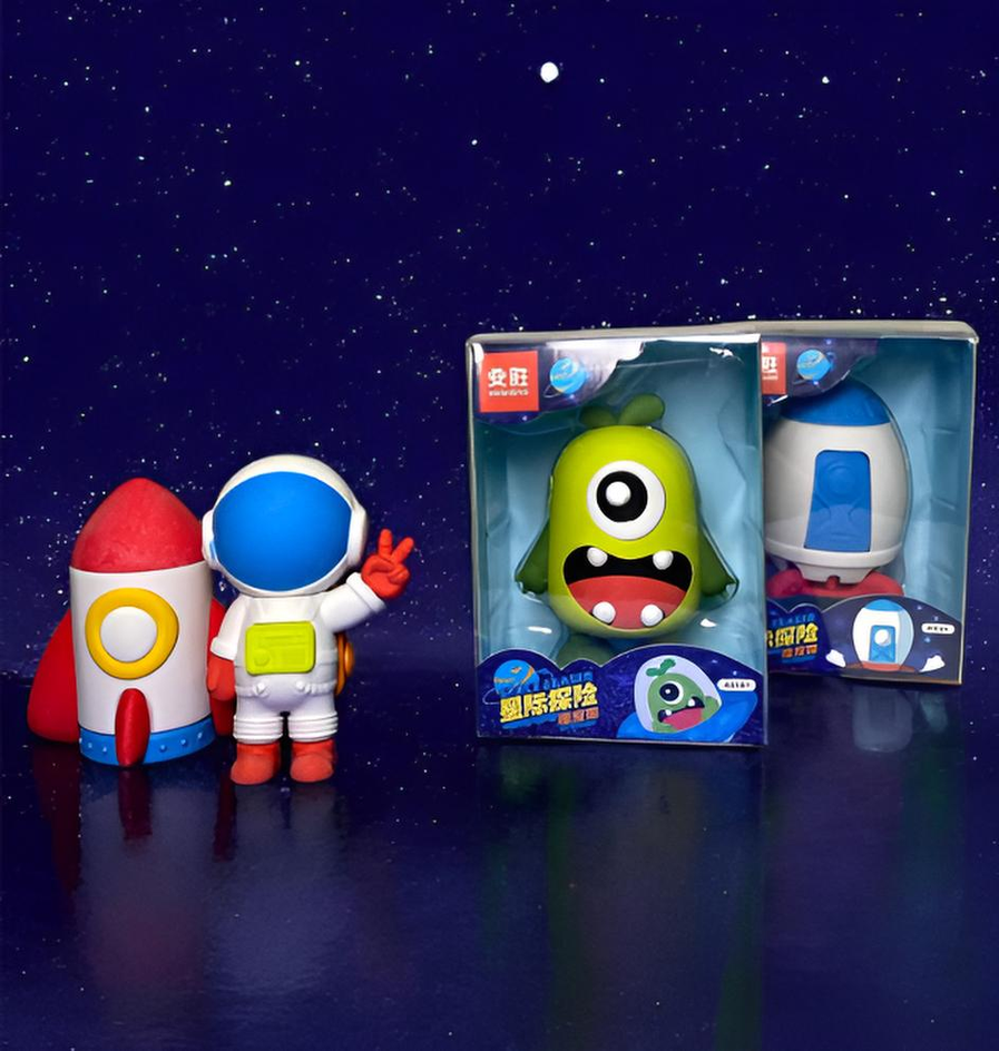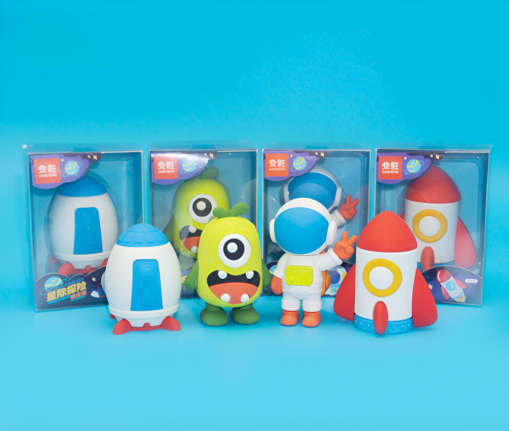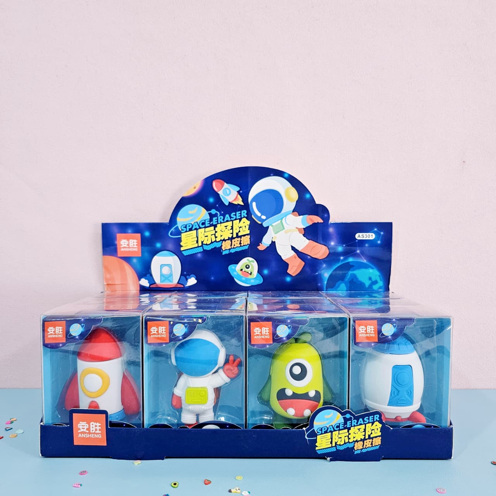(Goma para borrar con diseños surtidos de nave espacial, astronauta. Al ser encastrables podes usarla con la figura armada o en partes).