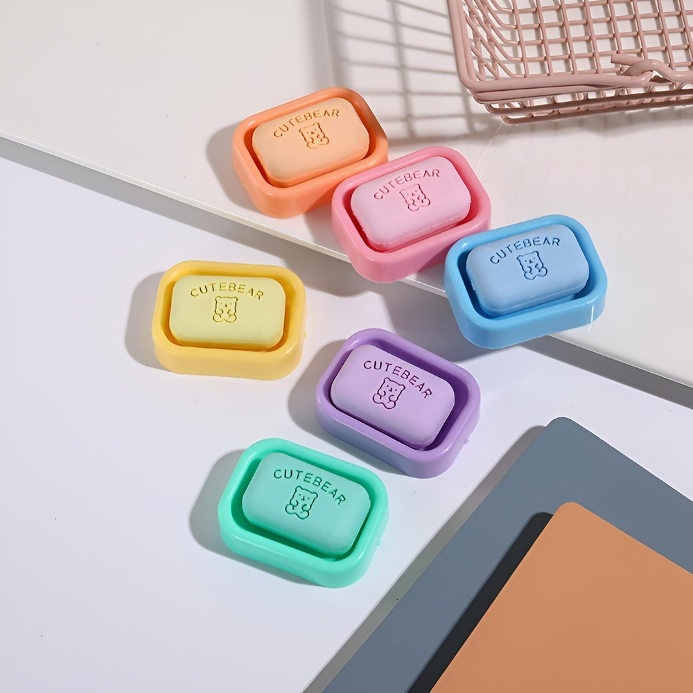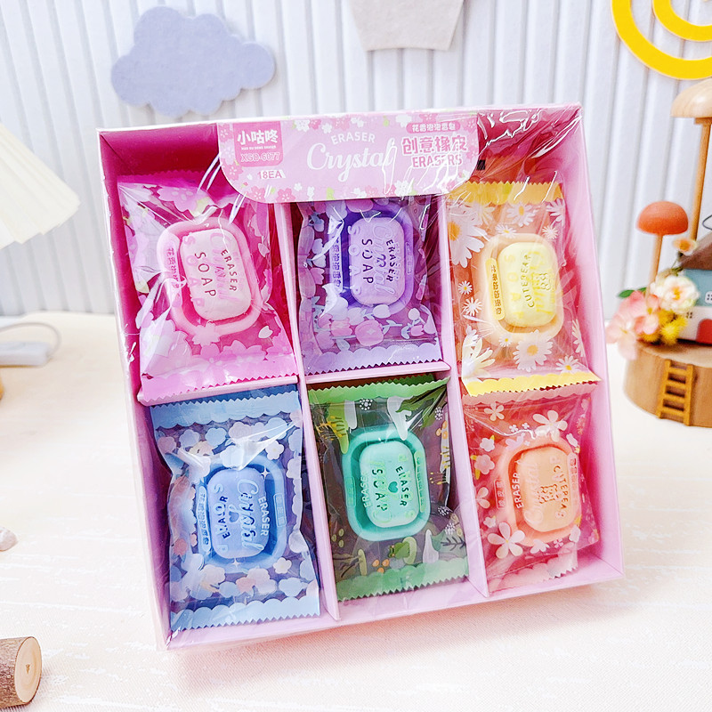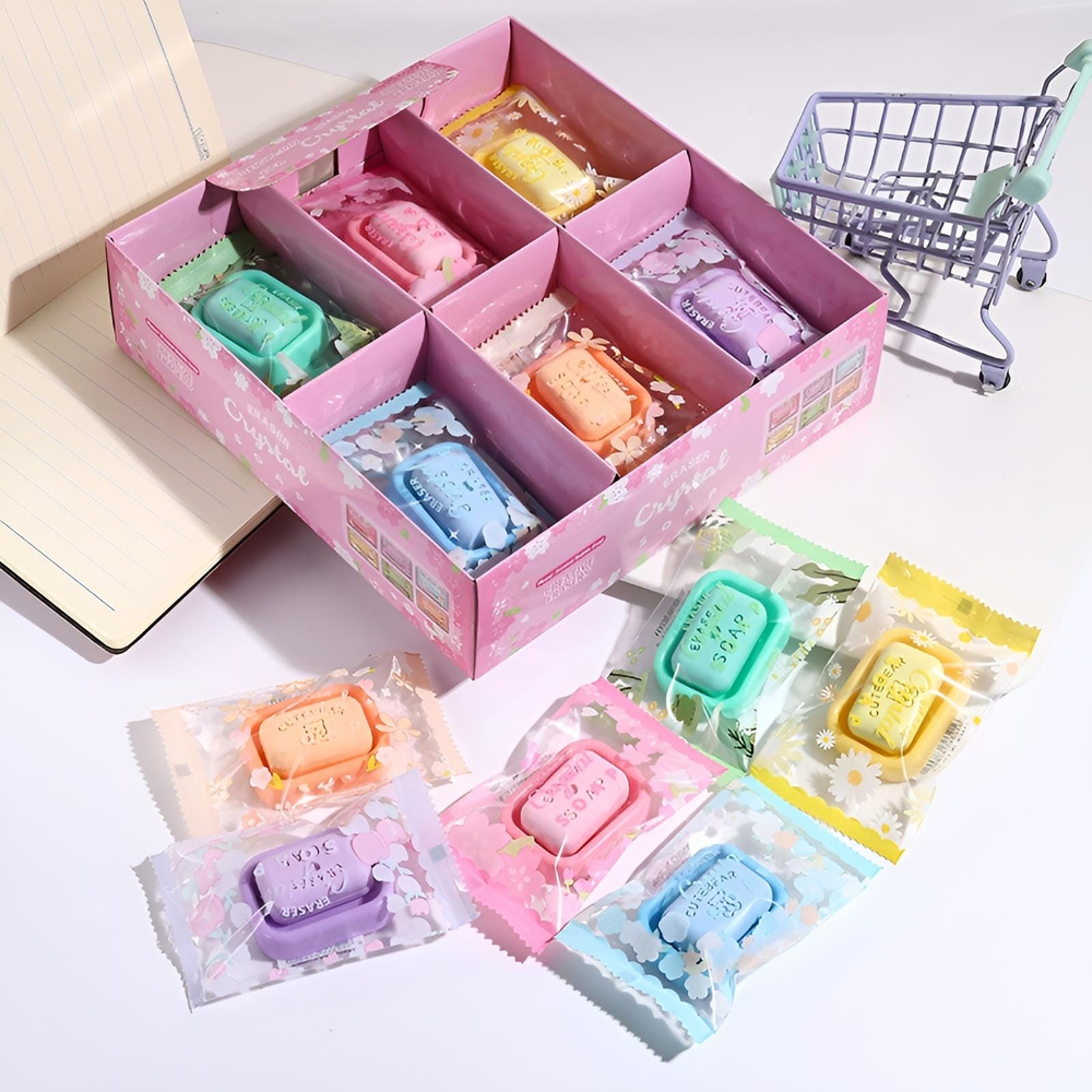 (Goma para borrar con diseño en forma de jabonera y jabón. Vienen en caja x 18 unidades).