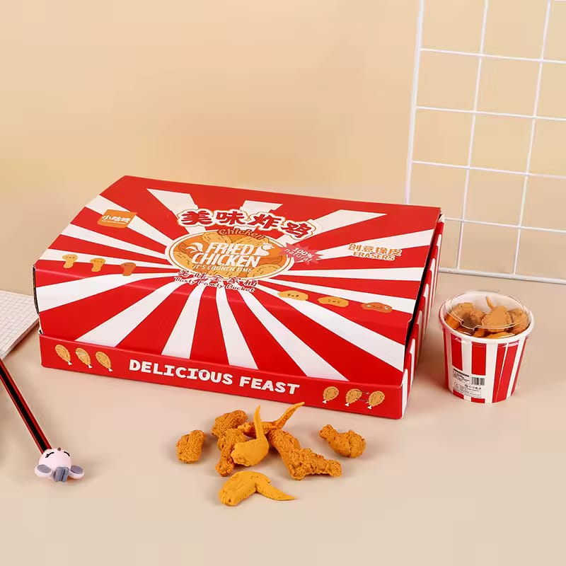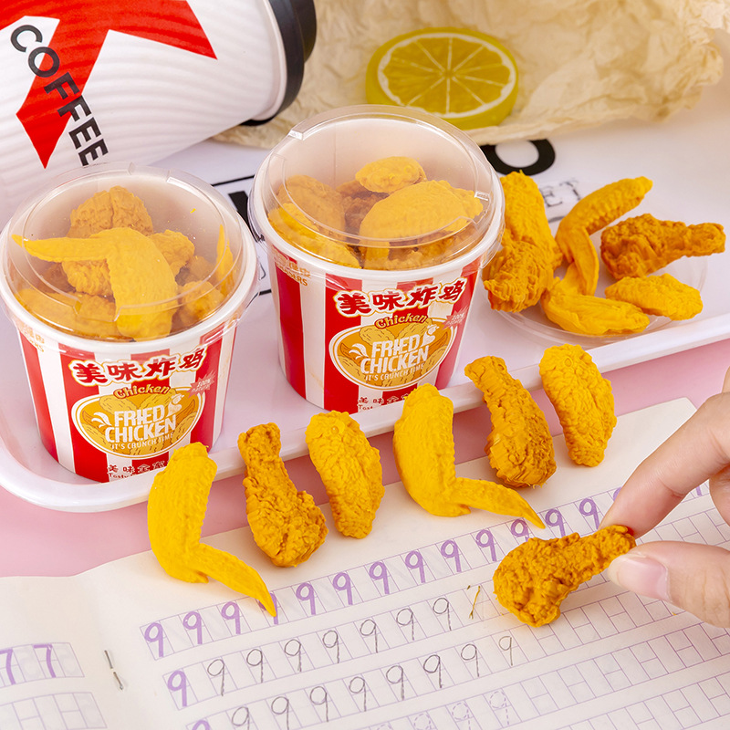 (Goma para borrar con diseño en forma de pollo frito. Cada tarrito vienen 9 unidades de pollo frito).