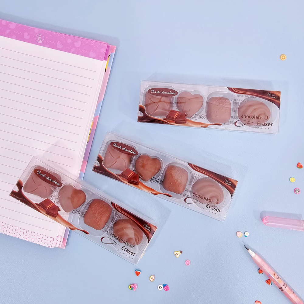 (Goma de borrar en forma de bombones de chocolate. Viene en Caja x 30 Set, cada set contiene 4 unidades de gomas).
