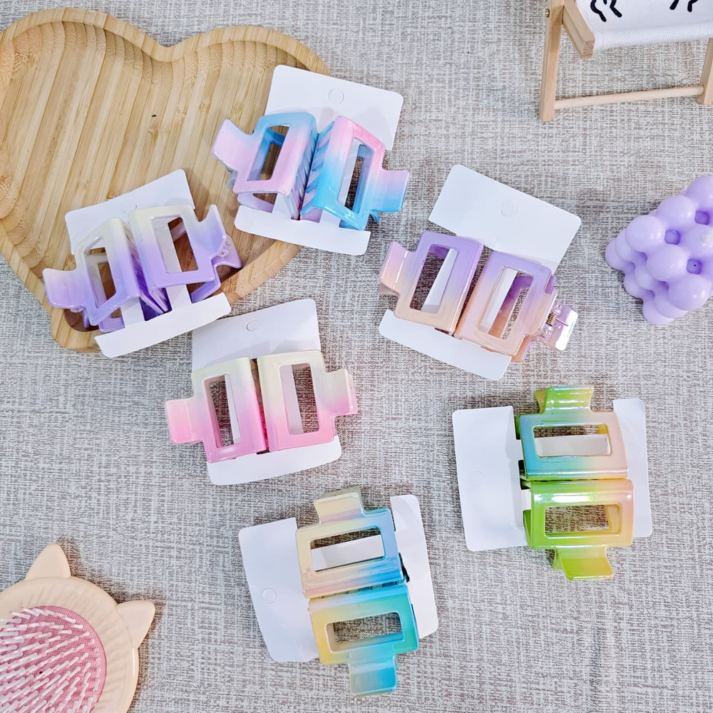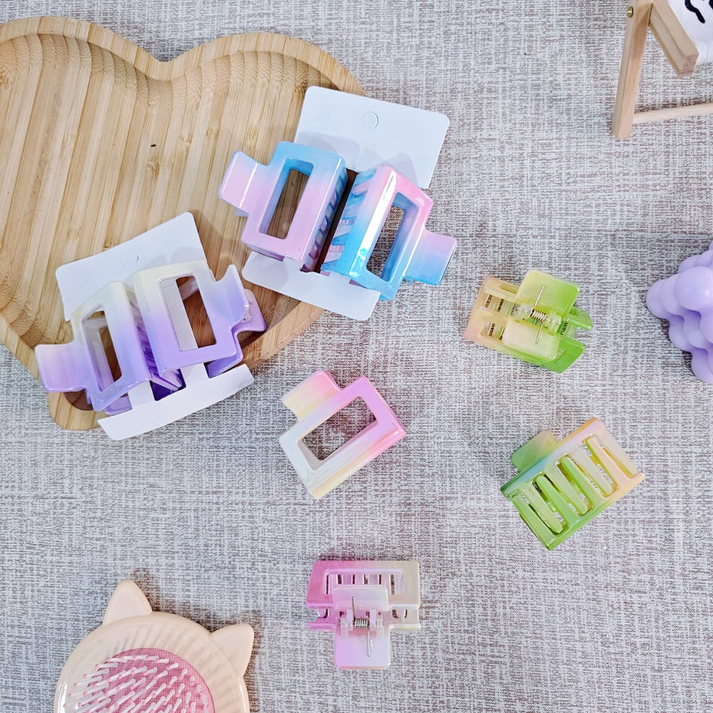 (Broches para el cabello en forma rectangular, cada blíster trae 2U. . en varios colores tornasolados, incluyendo naranja, rosa, violeta, celeste, etc. Son un accesorio de moda popular para el cabello).