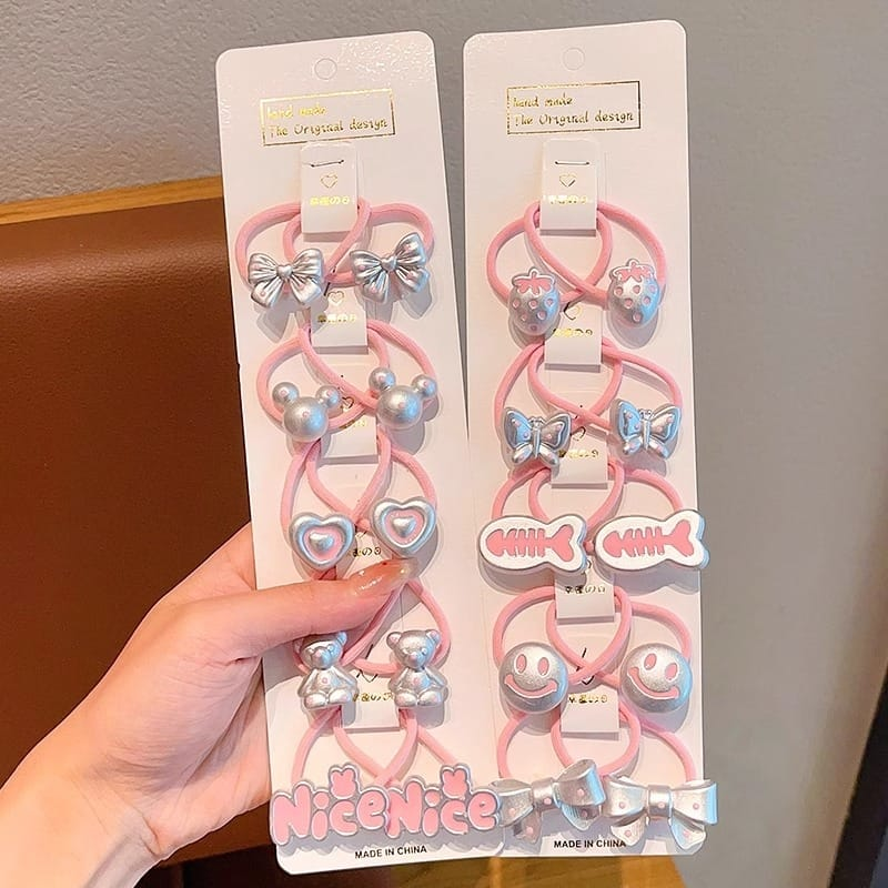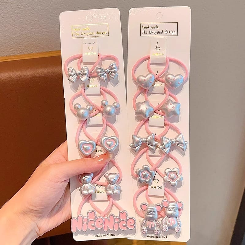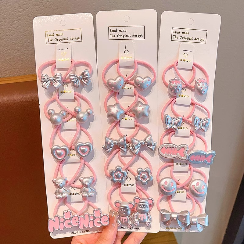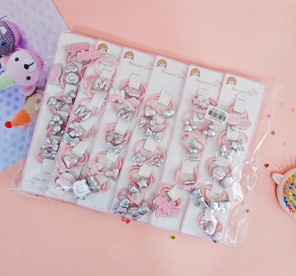 (Gomitas elásticas para el cabello. Las gomitas de diversos colores son de tamaño mediano y muy elásticas).