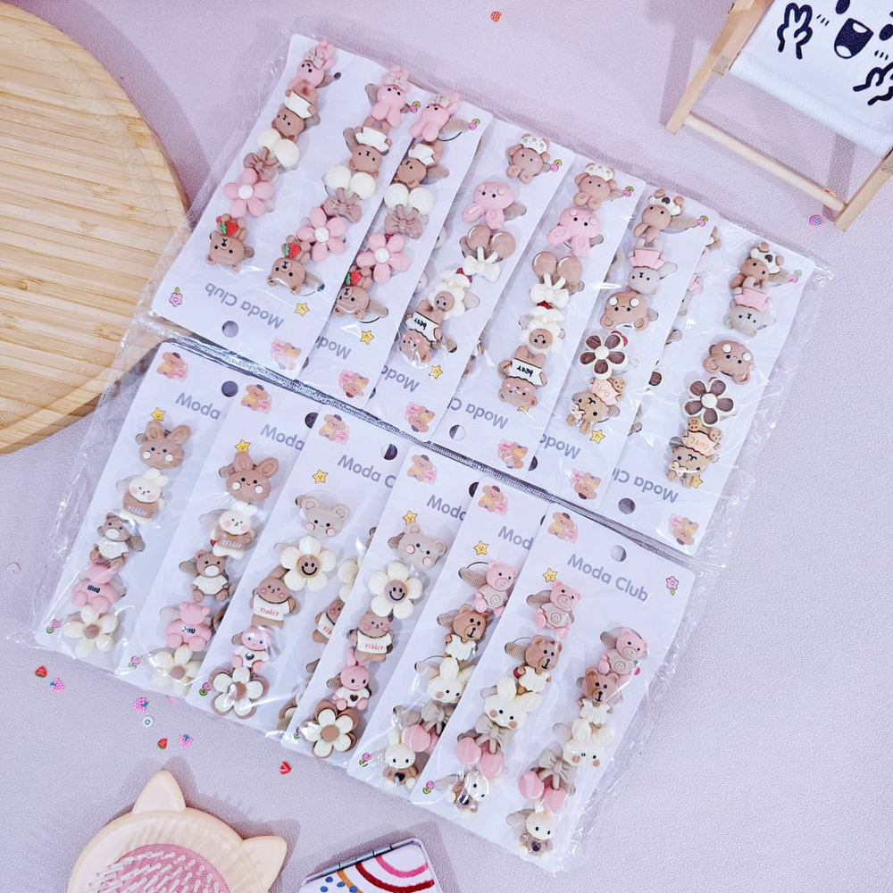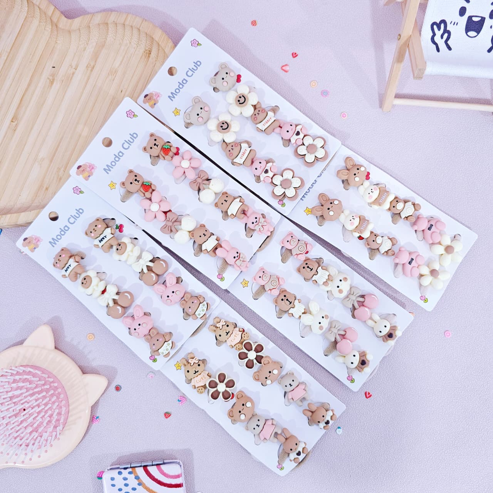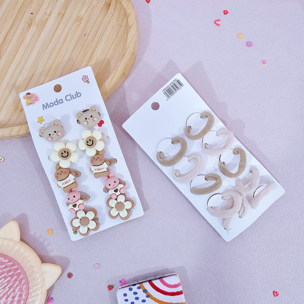 (Gomitas elásticas para el cabello. con diseños, de flores, cereza, ositos y conejo, son de tamaño mediano y muy elásticas).