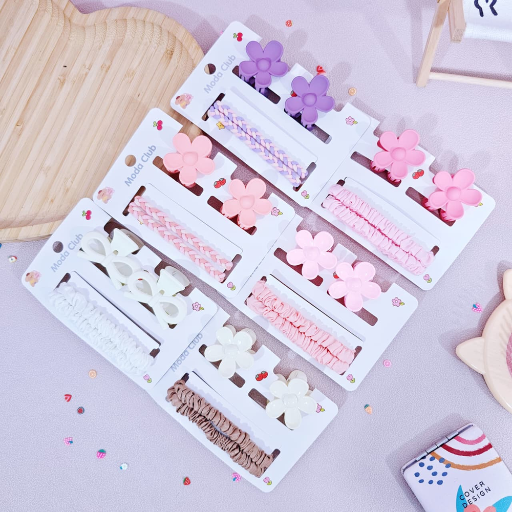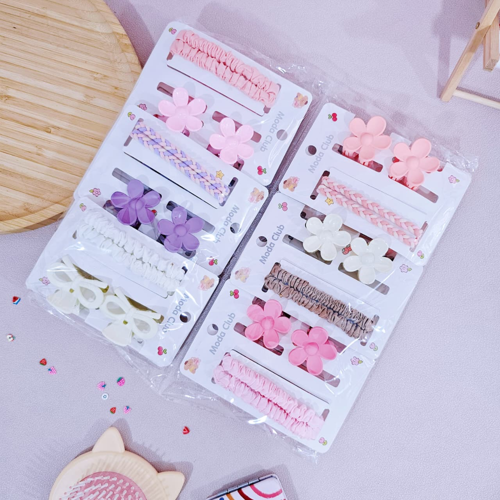 (Hebillas + colitas para el pelo disponibles en diferentes colores que sirven para sujetar el cabello, ya sea para mantenerlo alejado de la cara, para crear peinados o simplemente como elemento decorativo).
