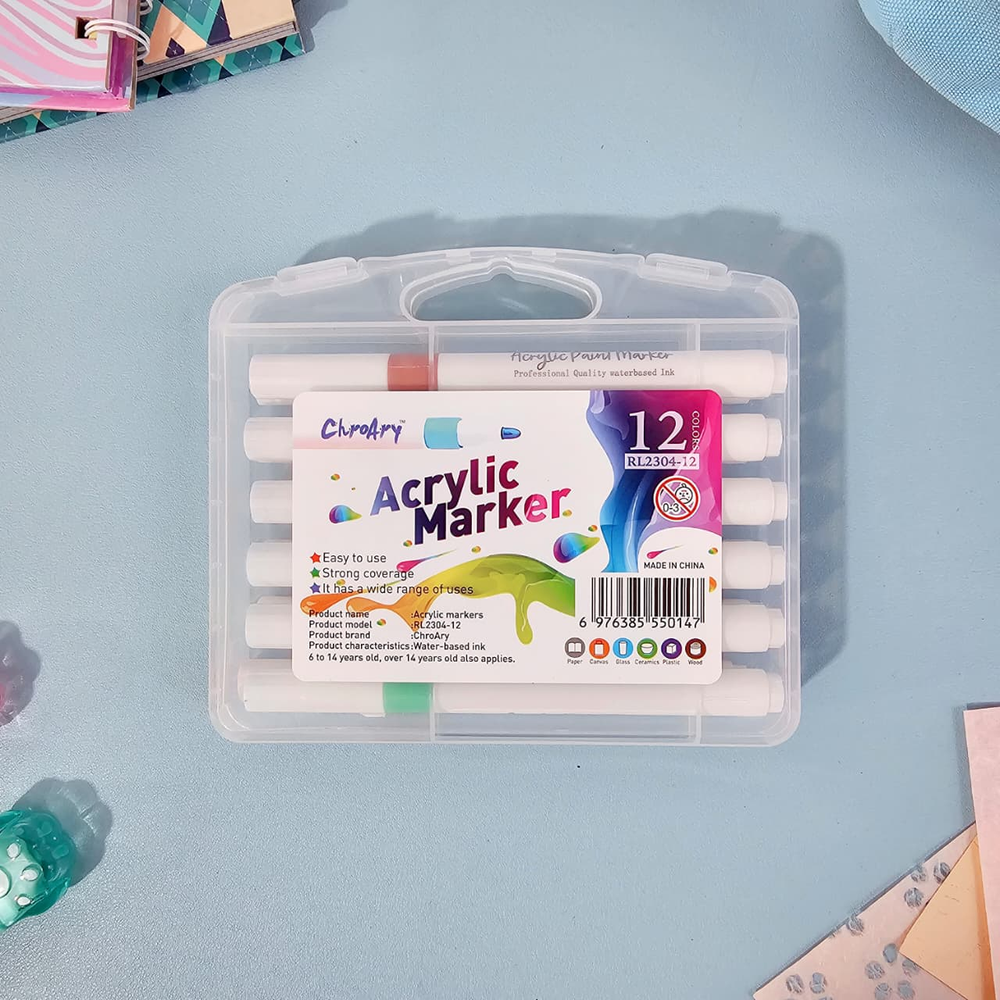 (Set x 12U. tinta acrílica ideal para pintar en vidrio, pared o superficie oscuras como cartulina, etc. Punta tipo pincel ideal para pintar o hacer lettering).