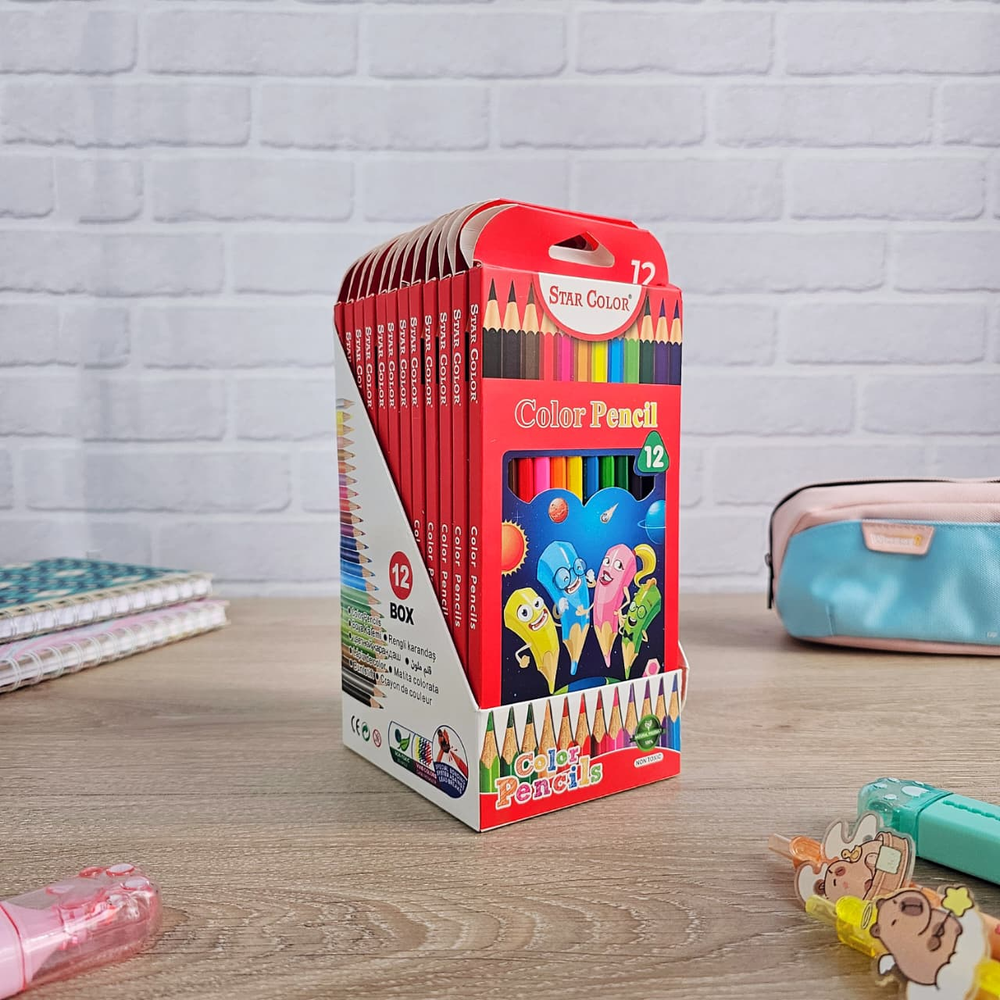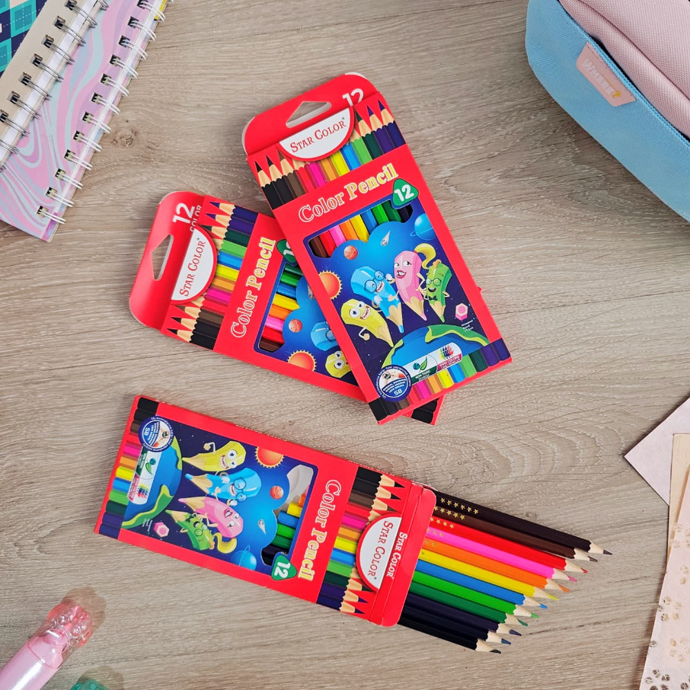 (Caja con 12 unidades de lápices colores surtidos,, mina resistente y suave. Ideal para darle color a tus dibujos).