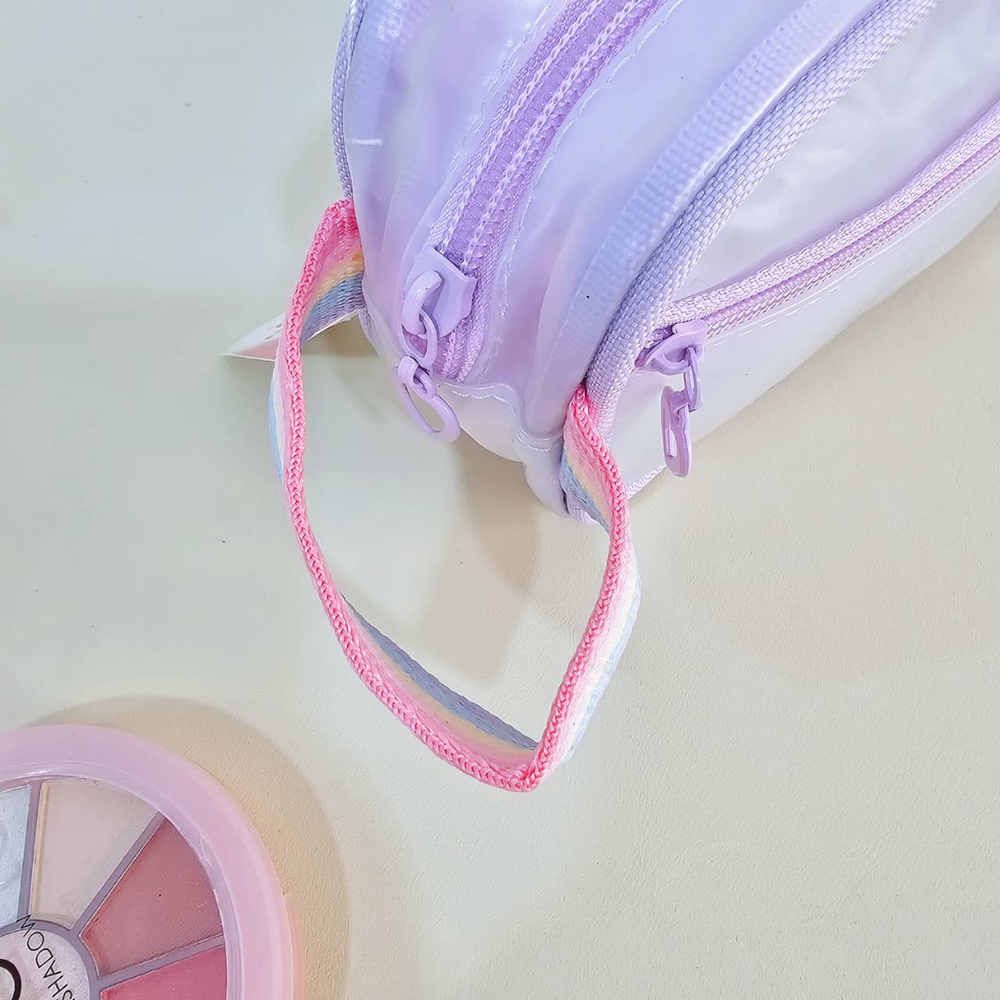 (Neceser que permite guardar y organizar de manera eficiente productos de maquillaje, como labiales, brochas, paletas de sombras, cremas y otros artículos personales. Facilita el transporte de cosméticos de forma segura, evitando pérdidas o daños durante viajes o traslados. Mantiene los productos de belleza ordenados y fácilmente accesibles, lo que agiliza la rutina de maquillaje Son multifuncionales y pueden usarse también para guardar joyas, accesorios electrónicos o artículos de tocador. Disponible en color: lila, rosa y verde). (Ut28)