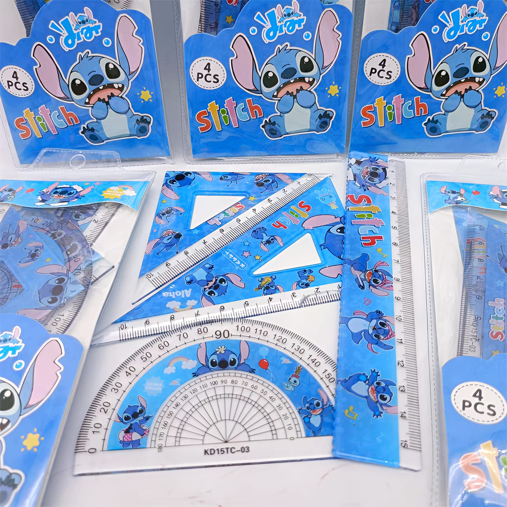 (Kit de geometría con un tierno diseño de "Stitch", incluye: 1 Escuadra Isósceles, 1 Escuadra Escaleno. 1 Regla de 15cm y 1 transportador).