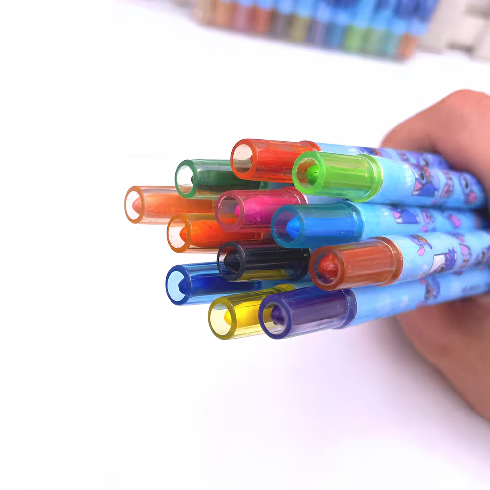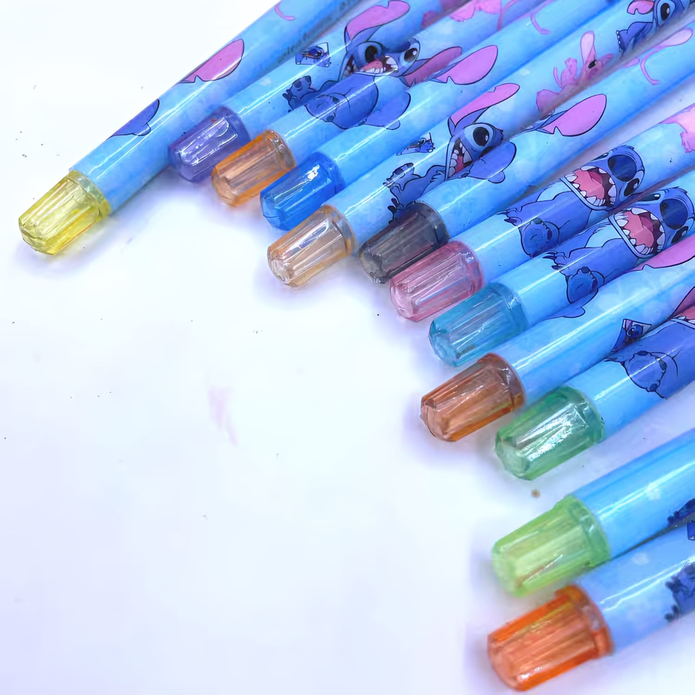 (Cada set trae 12 crayones de colores con la temática de "Stitch" . Ideal para esta vuelta al colegio).