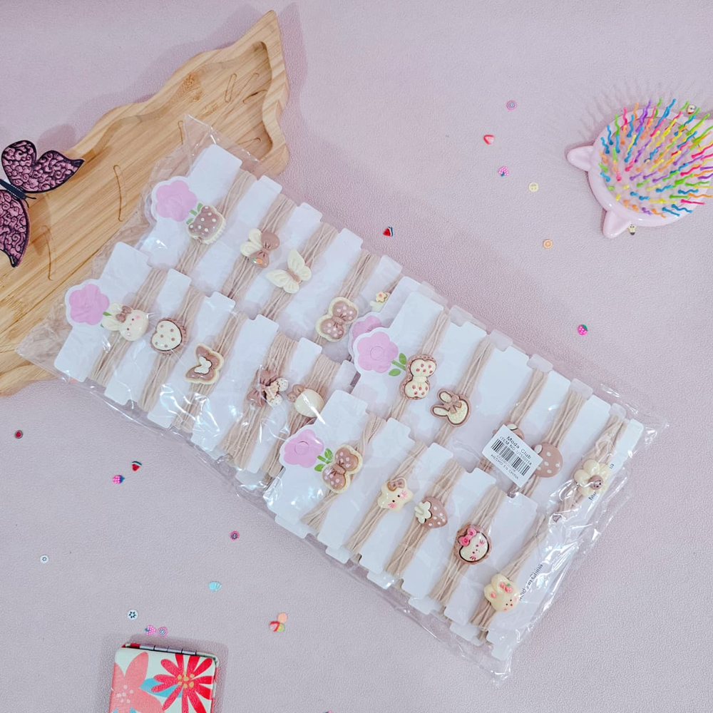 (Pack x 12 Blíster. Cada blíster cuenta con 5 pares de colitas con diseños distintos en tonalidades blanco y marrón. Ideal para realizar peinados).