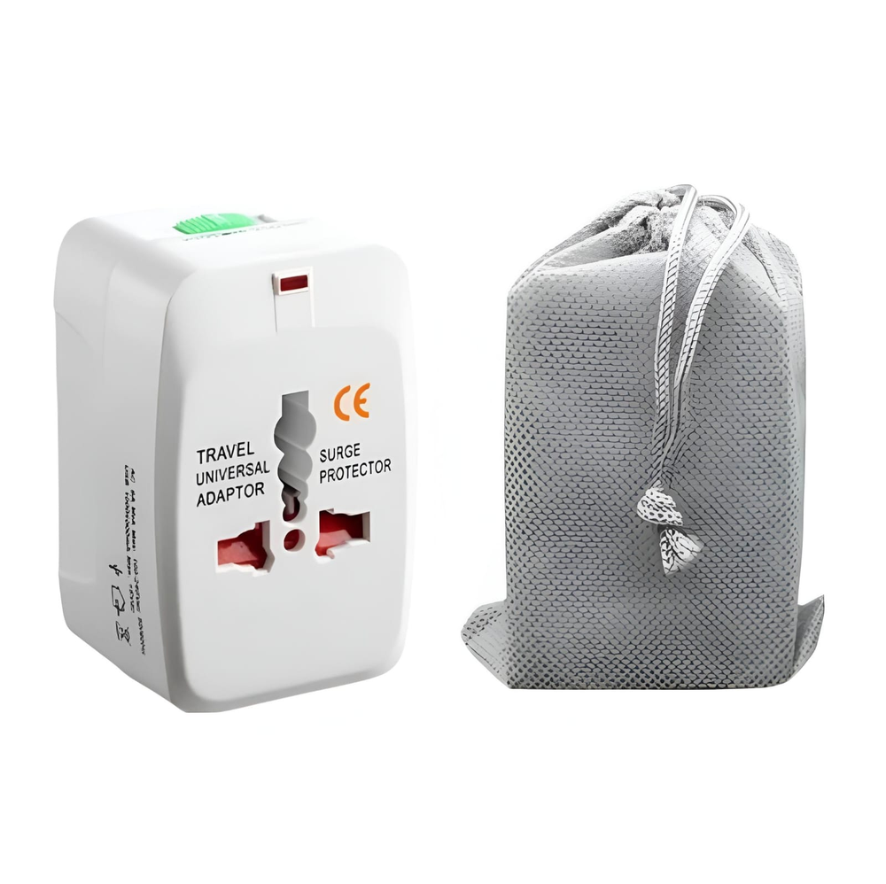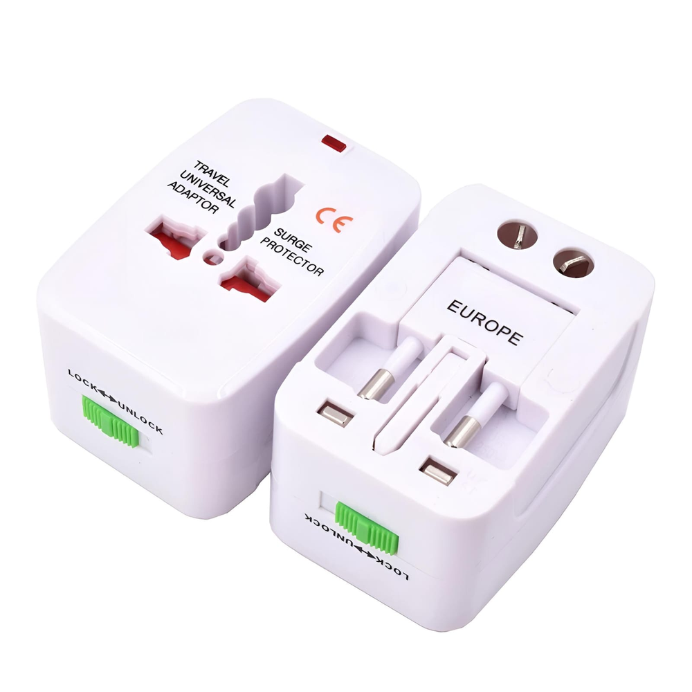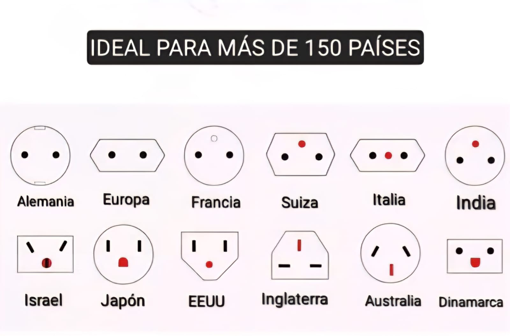 (Adaptador de enchufe universal de viaje. Permite conectar dispositivos electrónicos a diferentes tipos de tomas de corriente en varios países. Ideal para viajeros frecuentes, ya que es compatible con la mayoría de los enchufes utilizados a nivel mundial).