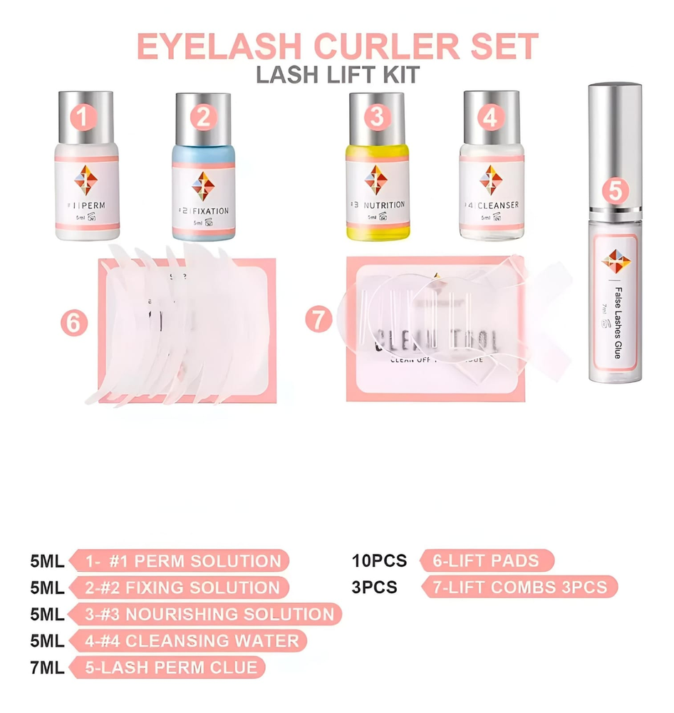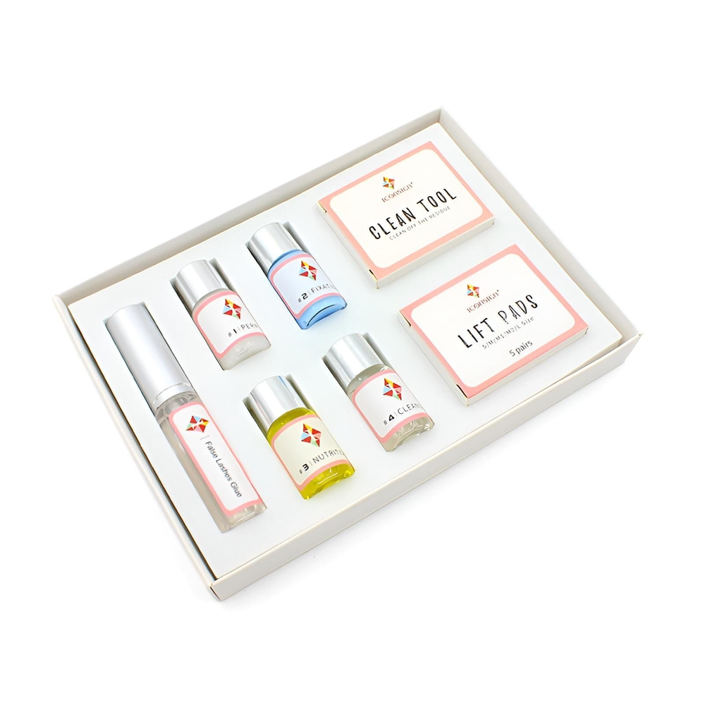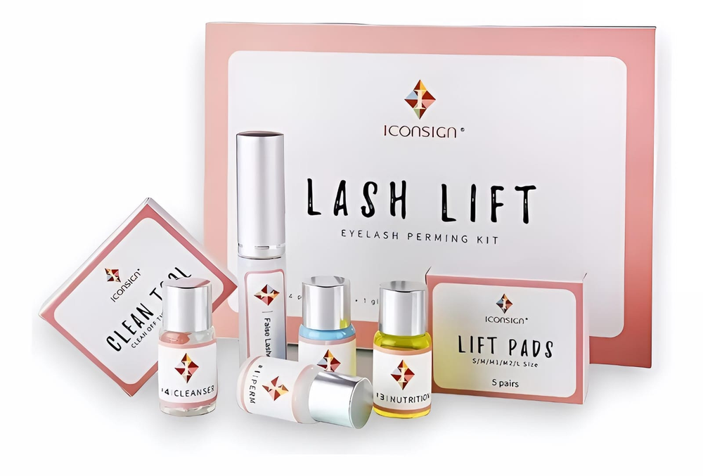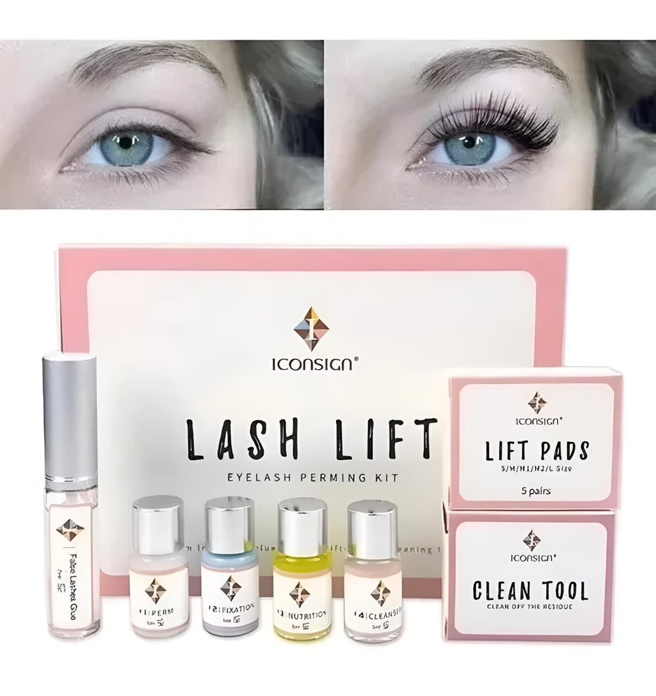 (Kit para Lifting "ICONSIGN" Lash Lift, diseñado para realzar y curvar las pestañas de forma natural. Los resultados pueden durar hasta 6 a 8 semanas, ofreciendo una solución duradera. Es adecuado para todo tipo de pestañas y es hipoalergénico, lo que lo hace seguro para ojos sensibles).