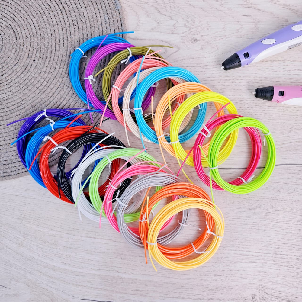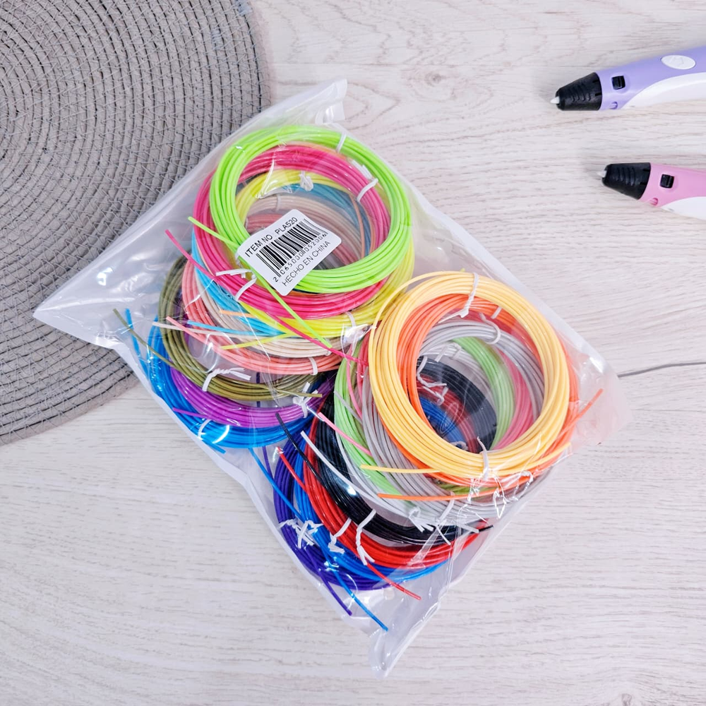 (Pack x 20U. Filamento Repuesto Lapiz 3D. Son el material de "tinta" que se derrite y se extruye desde un bolígrafo 3D para crear estructuras tridimensionales. Son compatibles con la mayoría de los bolígrafos 3D. Vienen en una amplia gama de colores, como se ve en la imagen, lo que permite una mayor creatividad en los diseños).