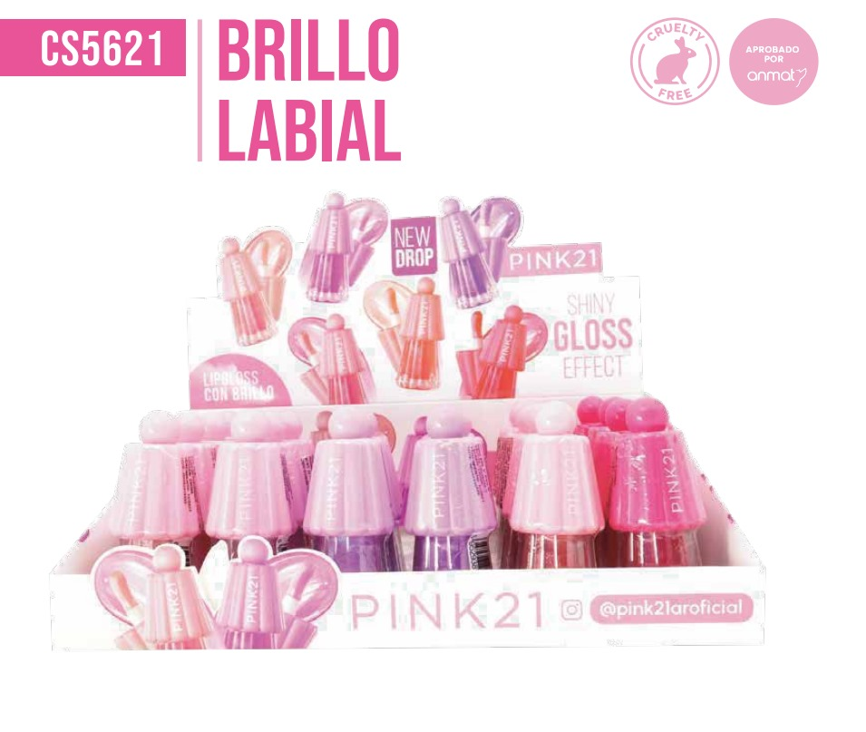 (Brillo Labial super hidratante "Pink 21". Aporta brillo radiante y sutil a los labios, además de hidratarlos y nutrirlos. Efecto super brilloso, viene en 6 colores distintos y cuenta con un aplicador grande).