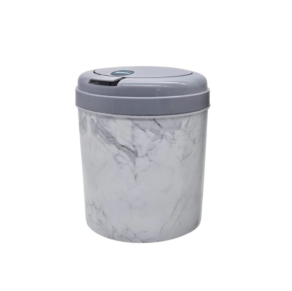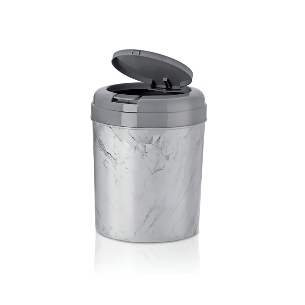(Cesto de Residuos 7Lts. Presenta un acabado marmolado y una tapa con sistema de apertura "click" o vaivén).