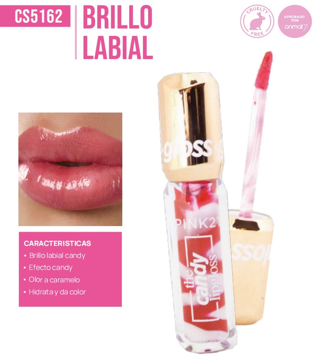 (Brillo Labial super hidratante "Pink 21". Aporta brillo radiante y sutil a los labios, además de hidratarlos y nutrirlos. Tiene olor a caramelo y está disponible en 4 tonos).