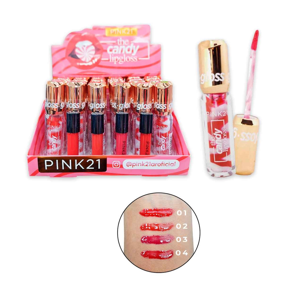 (Brillo Labial super hidratante "Pink 21". Aporta brillo radiante y sutil a los labios, además de hidratarlos y nutrirlos. Tiene olor a caramelo y está disponible en 4 tonos).