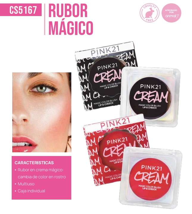 (Rubor en crema para añadir un toque de color y un efecto luminoso a las mejillas y los labios, proporcionando un aspecto natural y saludable. Su formato permite una aplicación y difuminación sencillas. Tiene un efecto mágico: cambia de color en el rostro).