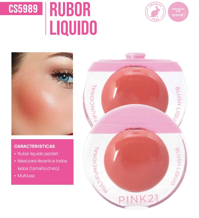 (Rubor liquido pocket, ideal para llevar a cualquier lugar debido a su tamaño compacto. Además, es un producto multiuso y multifuncional, lo que lo hace versátil para diferentes aplicaciones de maquillaje).