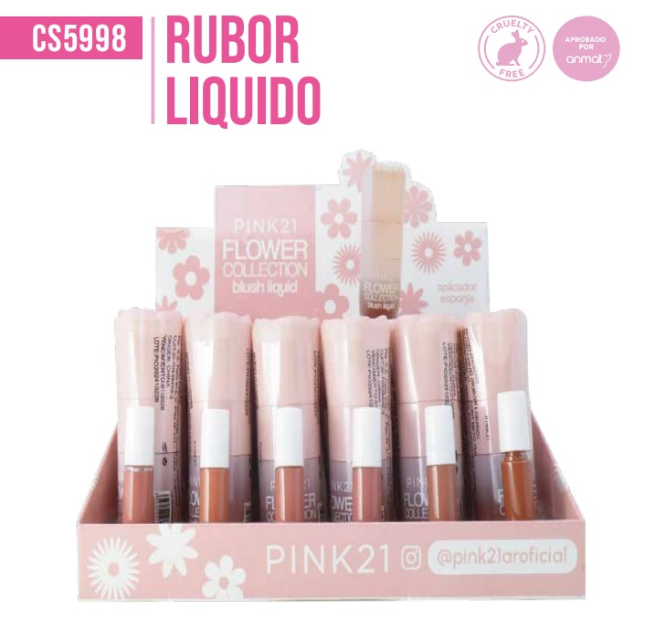 (Rubor Liquido "Pink 21" Incluye un aplicador de esponja. Disponible en 6 tonos diferentes. Ofrece un efecto mate, parte de la colección "Flower").