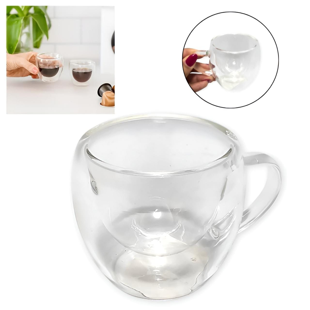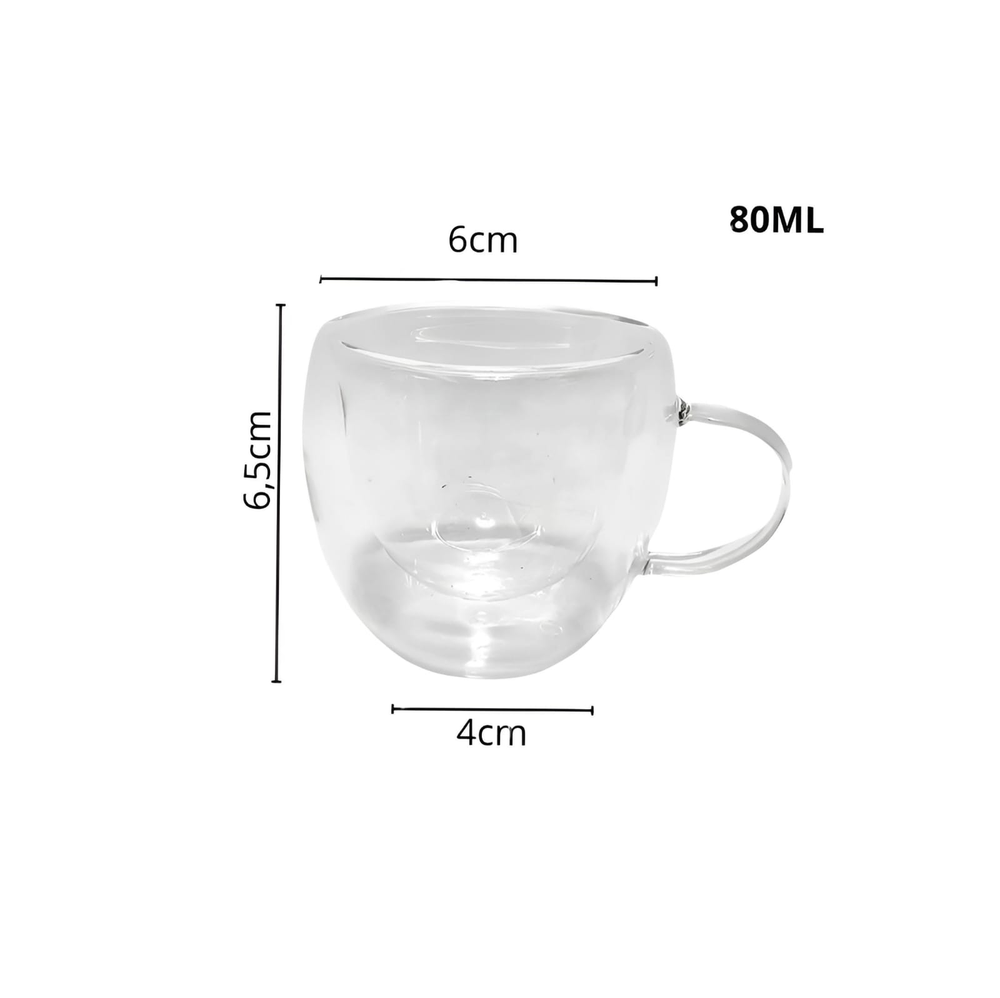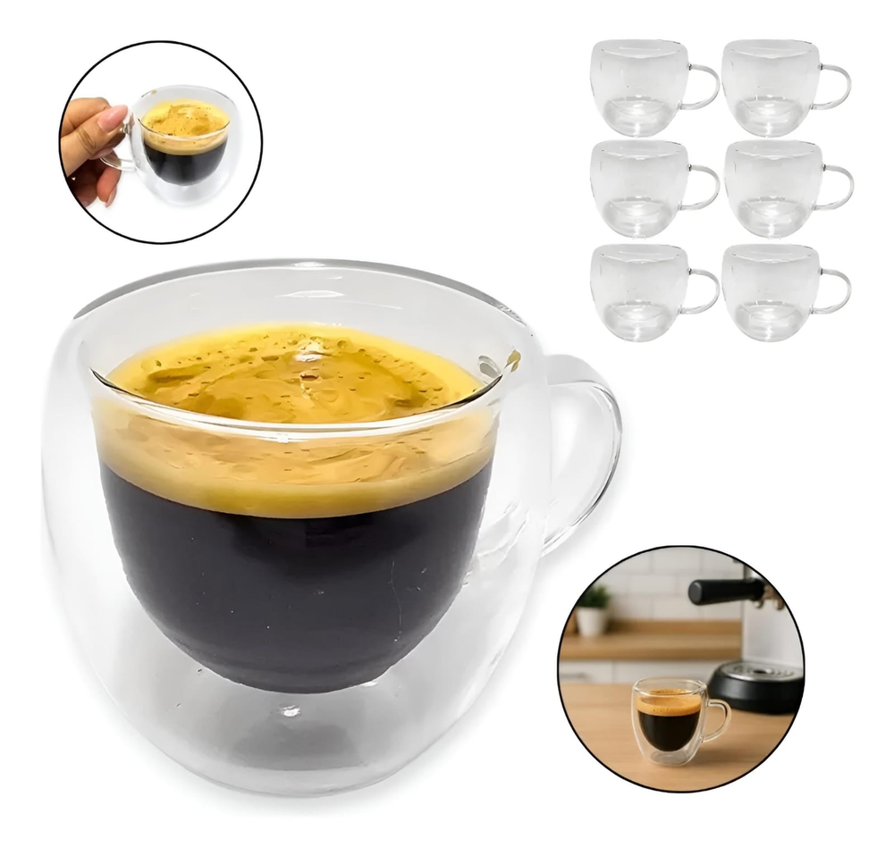 (Cuentan con doble pared de vidrio, lo que proporciona aislamiento térmico para mantener la temperatura de la bebida. Capacidad de 80 ml).