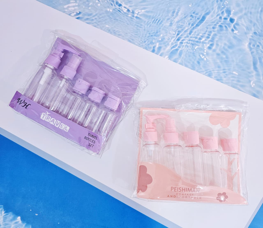 (Set x 5U. Neceser de viaje, que cuenta con 5 envases de color transparente que son un material de plástico, ideal para poder sacar el producto fácilmente presionándolo. Son super útiles a la hora de llevarlos de viaje, ya que por su tamaño no ocupan espacio). Ut29.