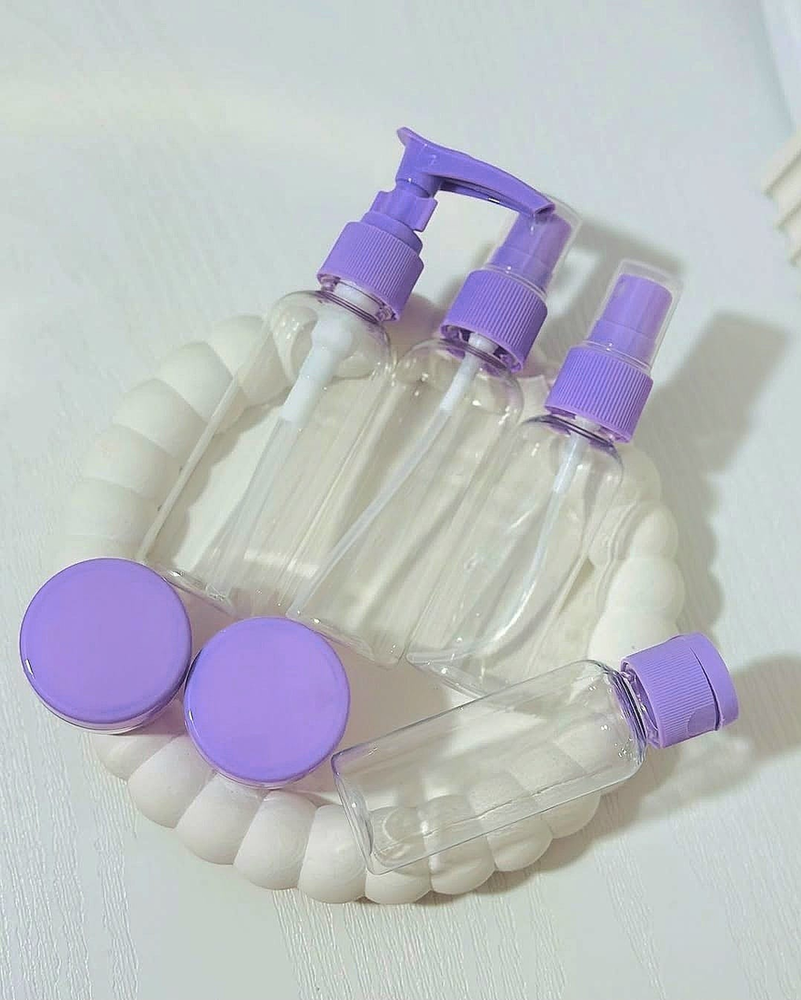 (Set x 6U. Neceser de viaje, que cuenta con un dispensador, dos rociadores, un frasco y dos potes para crema. Ideal para poder sacar el producto fácilmente presionándolo. Son super útiles a la hora de llevarlos de viaje, ya que por su tamaño no ocupan espacio). Ut29.