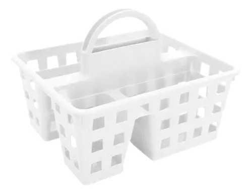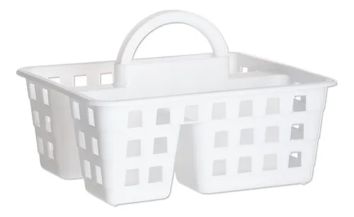 (Canasto organizador con manija y divisiones, ideal para gusrdar difrentes productos de limpieza).