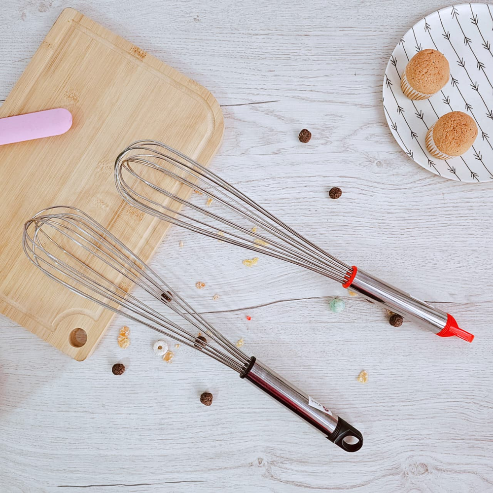 (Batidor de acero inoxidable, posee un gancho para sujetarse en el extremo de su mango).