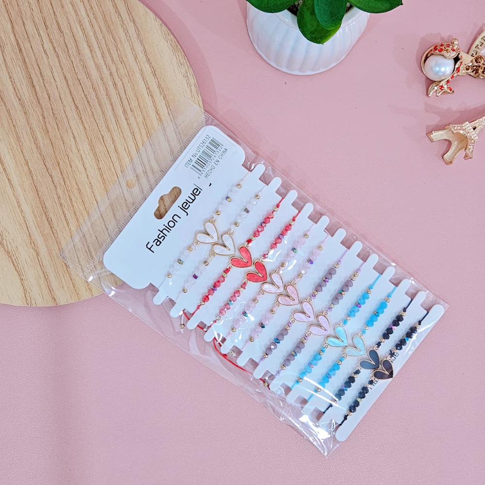 (Blíster con 12 unidades de pulseras, en colores varios. Diseño delicado con correas ajustables.) Ut29